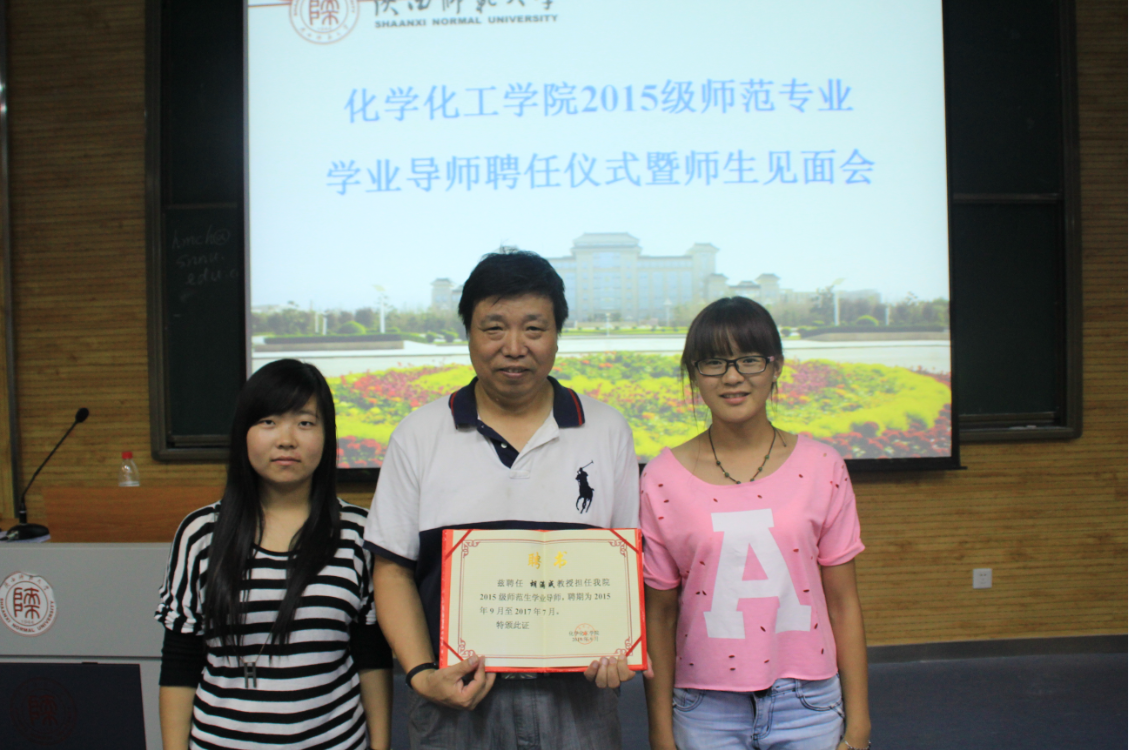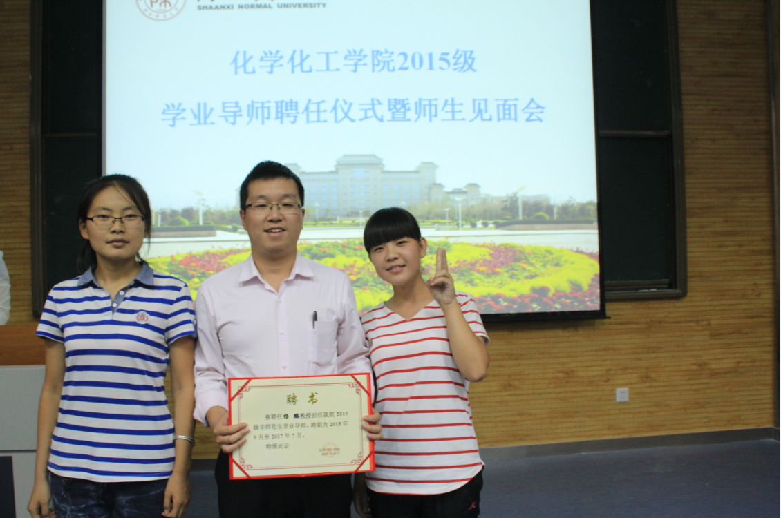 化学化工学院2015级本科生学业导师聘任仪式暨师生见面会9月27日在雁塔校区5104教室举行。化学化工学院党委书记高玲香教授、胡满成教授、杨鹏教授及理科基础部辅导员龙卓华老师出席了此次见面会。