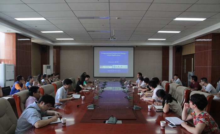 7月6日上午,美国南伊利诺斯大学葛庆峰、王丽昌教授应邀在致知楼五层报告厅分别为我院师生作了题为“Computational Catalysis for Energy-related Applications”和“Tuning Excitons of Photosensitizers to Generate Long-Lived Charge Separated/Excited States”的精彩报告。报告会由刘忠文教授主持,材料科学与工程学院安忠维、我院张成孝、王文亮、尹世伟、刘峰毅、刘静、王渭娜等老师及相关专业三十多位研究生聆听了报告。