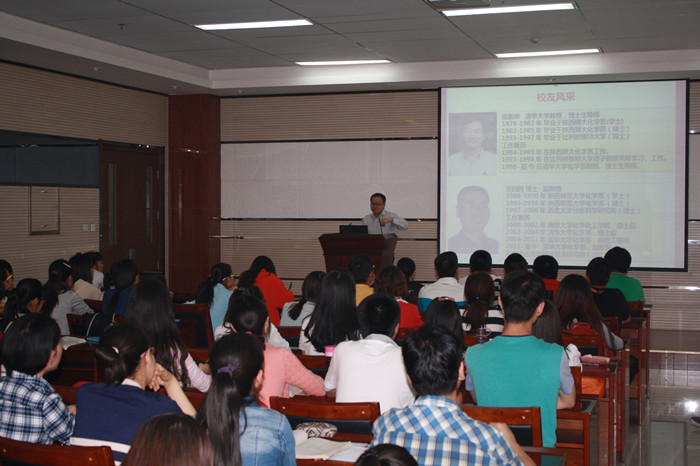 薛东教授从甲午战争留下的思考讲到民族复兴的希望,引出科学研究的重要性,从爱国角度激发了同学们进行科学研究的激情。随后,薛老师通过大量有关学历与毕业生职业发展状况、学历与收入的详实对比数据向大家介绍了不同学历毕业生的就业情况,详细分析了考研的优势,并用直观形象的图片讲述了考研的副产物。讲座中,薛老师通过我院毕业的几名优秀校友的故事,激励同学们要有远大的理想,要勇往直前,为理想而拼搏,争取做学历高、知识丰富、气质高雅的“高富雅”。薛东教授的报告幽默诙谐而又催人奋进,博得了同学们阵阵掌声。