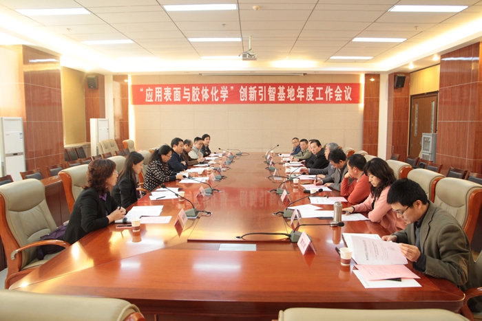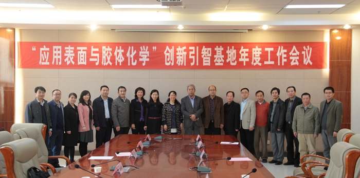 2015年4月20日,教育部“应用表面与胶体化学”学科创新引智基地年度会议在化学化工学院1568会议室召开。校长助理杨祖培、引智基地负责人房喻教授、人事处处长李磊、“211工程”与学科建设处处长姚若侠、国际交流与合作处处长徐峰、财务处副处长胡周娥、科技处副处长陈新兵、化学化工学院院长高子伟、党委书记高玲香、副院长薛东、材料科学与工程学院院长刘宗怀及引智基地各方向负责人张成孝教授、刘生忠教授、李正平教授等共计19人参加了会议。会议由科技处处长吴晓军主持。
