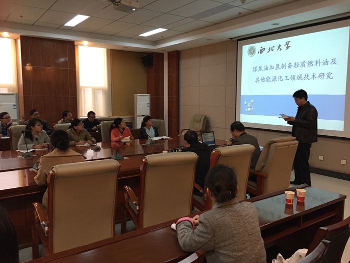 2015年3月18日下午,受应用表面与胶体化学教育部重点实验室与化学化工学院邀请,陕西省资源化工应用工程技术研究中心主任,陕西省化工学会副秘书长,陕西省化工学会能源化工委员会副主任,陕西省能源化工研究院专家委员会委员、西北大学李稳宏教授在致知楼1568报告厅为化学化工学院师生作了一场题为“煤焦油加氢制轻质燃料油及相关 能源技术研究”的精彩报告,报告会由应用表面与胶体化学教育部重点实验室董文生教授主持,化学化工学院刘昭铁教授、刘春玲教授、杨荣榛副教授和任慧芳博士后以及化学化工学院研究生40余人参加了报告会。 李稳宏教授报告内容涉及煤转化、煤焦油深加工、油气开采等,为我院师生详细介绍了近年来国内在煤焦油深加工转化制燃料油的技术研发状况,并与大家分享了其研究团队在中低温煤焦油全馏分加氢制轻质燃料油技术开发过程中从实验室小试、中试及10万吨工业试验过程的经验。李教授详细回答了现场师生的提问,并结合自己在实验研究以及工业生产中所遇到的问题和师生们进行了深入地讨论,让大家受益匪浅。