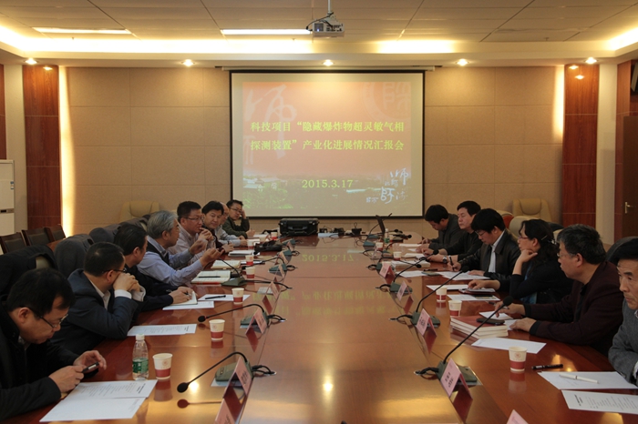 日前,由我院房喻教授团队研发的科技项目“隐藏爆炸物超灵敏探测装置”正式生产问世。3月17日,“隐藏爆炸物超灵敏探测装置”产业化进展情况汇报会在学院1568会议室举行,副校长游旭群,校长助理杨祖培,“深圳中物安全科技有限公司”(以下简称“中物安科”)总经理蔡文斌,我院课题组成员代表房喻教授出席会议。院长高子伟,党委书记高玲香,副院长薛东,副院长焦桓,资产经营有限责任公司总经理马进福,副总经理田皓、梁高全,物理学与信息技术学院副院长辛云宏,科技处处长吴晓军、副处长张卫兵,南方办事处主任闫永昌,宣传部部长孔祥利参加了会议。会议由马进福主持。 蔡文斌首先从“隐藏爆炸物超灵敏探测装置”的生产背景、生产过程、市场价值、企业未来发展方向等几个方面系统地汇报了该项目的生产情况,随后向与会人员展示了产品。