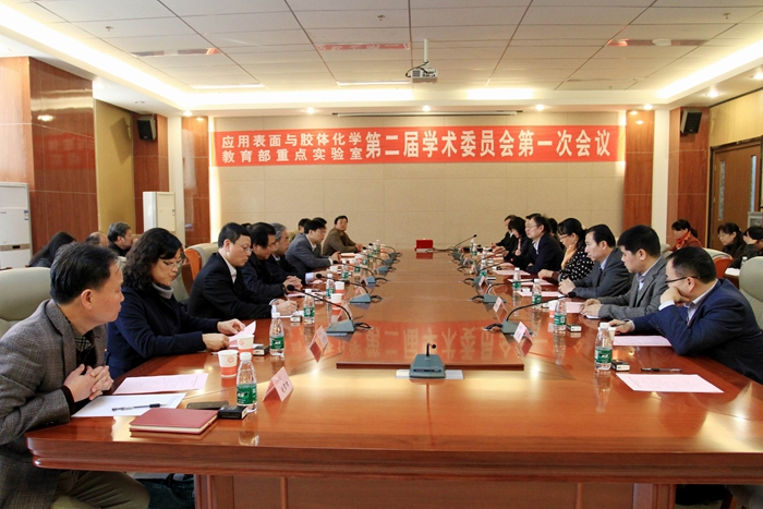 11月6日,应用表面与胶体化学教育部重点实验室第二届学术委员会第一次会议在长安校区致知楼1568会议室召开。本届学术委员会主任张涛院士(中科院大连化物所)、副主任房喻教授(陕西师范大学),委员刘志敏研究员(中国科学院化学研究所)、黄建滨教授(北京大学)、王绪绪教授(福州大学)、吕剑研究员(西安近代化学研究所)、范晓东教授(西北工业大学)、郭烈锦教授(西安交通大学)、王尧宇教授(西北大学)、刘昭铁教授(陕西师范大学)、刘宗怀教授(陕西师范大学)等出席了会议。我校校长程光旭、校长助理杨祖培、科技处处长吴晓军、副处长张卫兵、化学化工学院党委书记高玲香、院长高子伟和重点实验室部分成员40余人参加了会议。