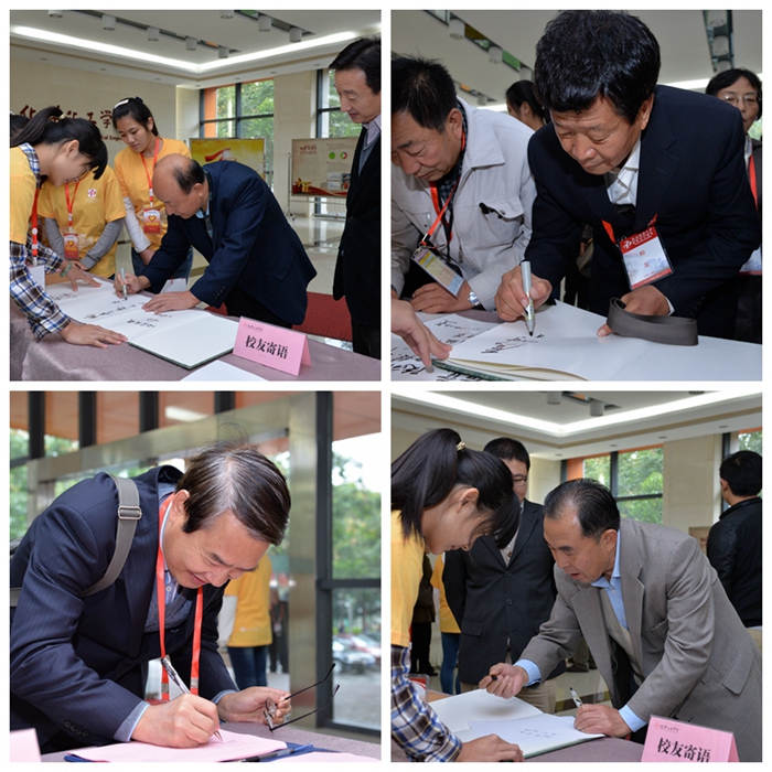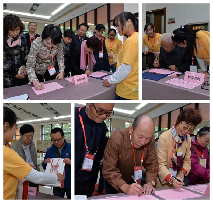 从10月11日起,我院就在学院一层门厅设置了校友签到席,并精心准备了20余套学位服供校友们合影留念。为了向校友们提供周到细致的服务,学院专门抽调了十余名青年教师带领精心挑选的60多名优秀本科生组成志愿者服务队接待校友,彰显了学院大家庭的温暖。微笑的志愿者们与和蔼可亲的校友们构成一个和谐的整体,成为学院一道亮丽的风景。