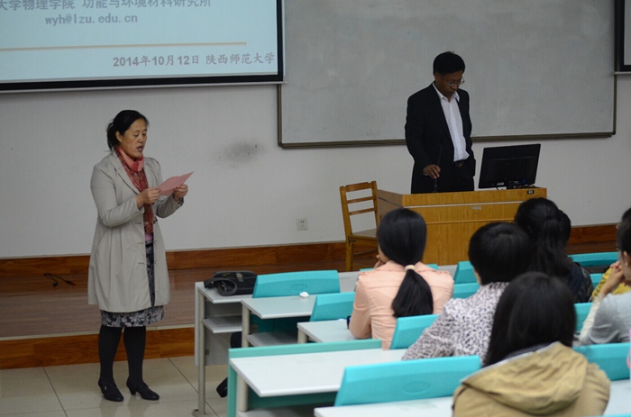 10月12日下午,我院85级校友、国家杰出青年基金获得者、兰州大学王育华教授,我院86级校友、国家杰出青年基金获得者、清华大学张四纯副教授应邀为三四年级本科生和一年级研究生做了以“我的化学故事”为主题的励志报告,学院副院长焦桓、分党委副书记王启明、辅导员谢遵园、牟朝丽参加了报告会。报告会由焦桓副院长主持。