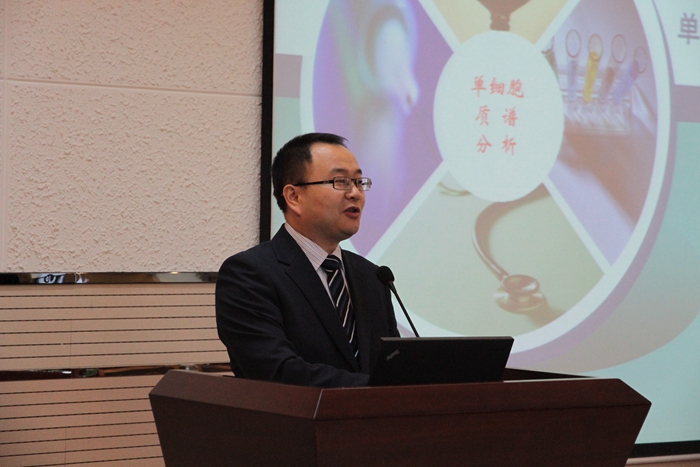 会上,我院82届本科毕业生、英国皇家化学会会士、清华大学教授张新荣首先为在场师生作了题为“单细胞质谱分析方法研究”的报告。张教授通过展示一篇篇优秀的学术文章分别介绍了单细胞质谱分析的意义、目前所面临的困难以及分析方法的前沿发展。他指出,单细胞探针点喷雾质谱分析将成为未来该领域的一个新研究方向。