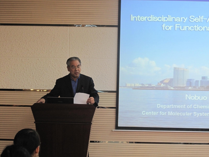 2014年9月17日上午,日本九州大学Nobuo Kimizuka教授应邀莅临化学化工学院,并在致知楼六层报告厅作了一场题为“Interdisciplinary Self-assembly Approaches for Functional Materials”的学术报告。报告由房喻教授主持。化学化工学院陈亚芍教授、刘守信教授、张颖教授、刘忠文教授、杨鹏教授、刘静副教授、丁立平副教授、彭军霞副教授等教师以及相关专业研究生聆听了报告。