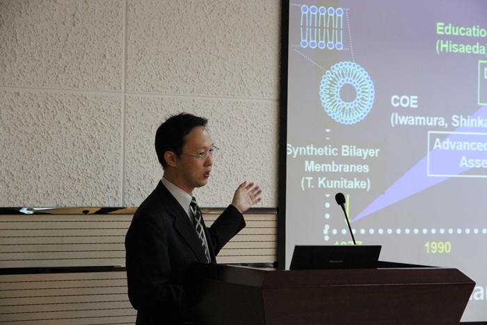 Nobuo Kimizuka教授首先向在场师生介绍了九州大学分子研究中心的发展历程和研究领域,同时介绍了该中心的研究生培养规模和培养方案。随后,Kimizuka教授介绍了自己的研究团队近年来在分子自组装领域取得的研究进展。报告后,我院师生与Kimizuka教授进行了热烈的讨论。Kimizuka教授思想活跃,思维缜密,让我们感受到了一位科研工作者对科研工作的执着和热情。本次学术交流为后续两校间的学术合作奠定了深厚的基础,也增进了相关专业师生对分子自组装领域新应用的了解。