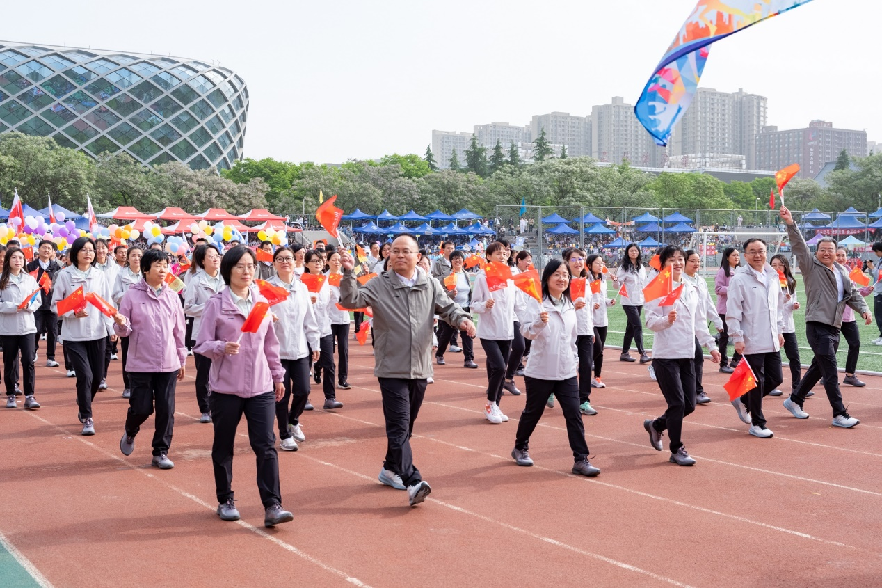 4月24日,我校2024年春季田径运动会长安校区体育场隆重开幕。学院教工精神抖擞,意气风发,为运动会做了充足的训练准备。早上八点,80余位教职工在学院门口集体合影之后意气风发地参加了运动会的入场式。大家迈着矫健的步伐,挥着国旗和院旗,喊着“化学化工,搏击长空,乘风破浪,勇攀高峰”的嘹亮口号走过主席台,充分展现了我院教职工团结奋进、积极向上的精神风貌。
