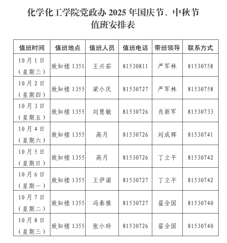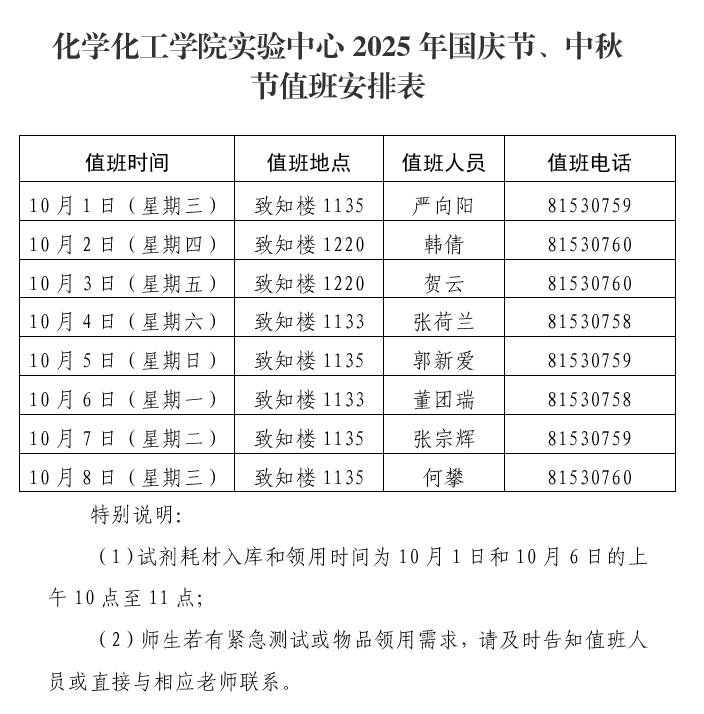 1.值班时间为8:30-12:00,14:30-17:30;