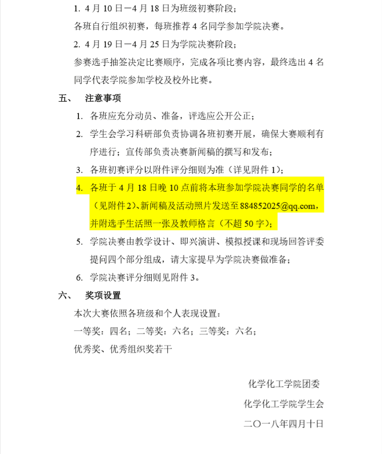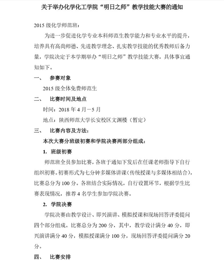 关于举办化学化工学院“明日之师”教学技能大赛的通知