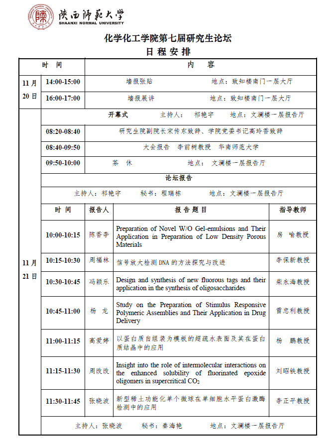 为了落实研究生教育创新计划,促进校际研究生的相互交流和学习,达到开阔研究生视野,活跃研究生思想,激发钻研精神,促进学术交流的目的,学院决定举办化学化工学院第七届研究生学术论坛。