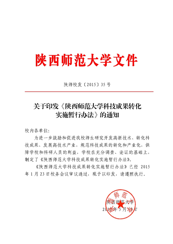 附件:《陕西师范大学科技成果转化实施暂行办法》