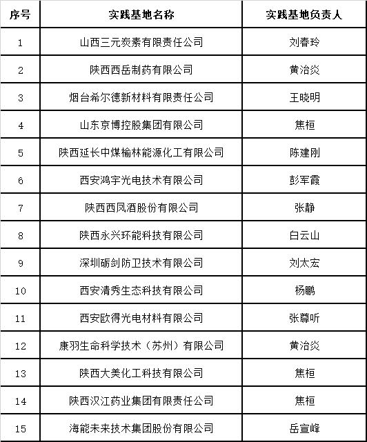化学化工学院实践基地信息汇总表