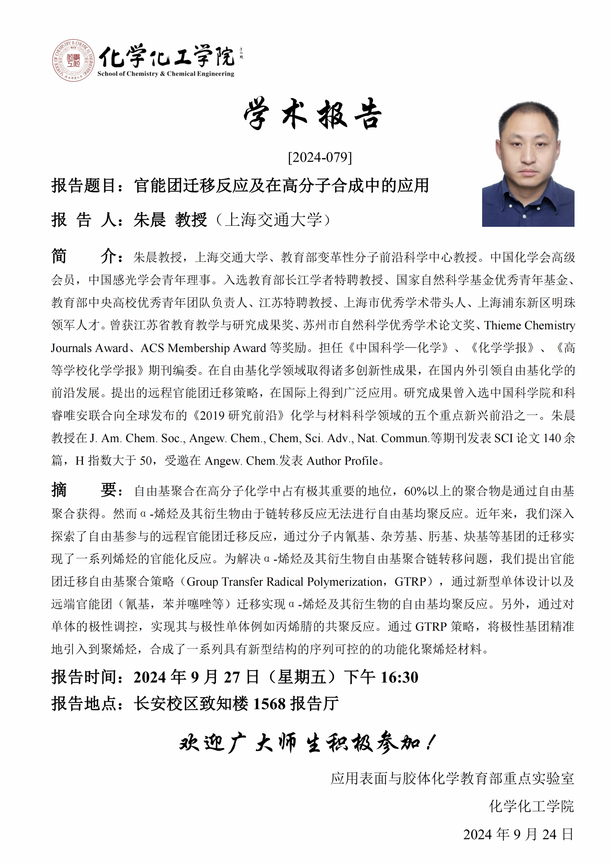 地址:陕西师范大学长安校区致知楼一段