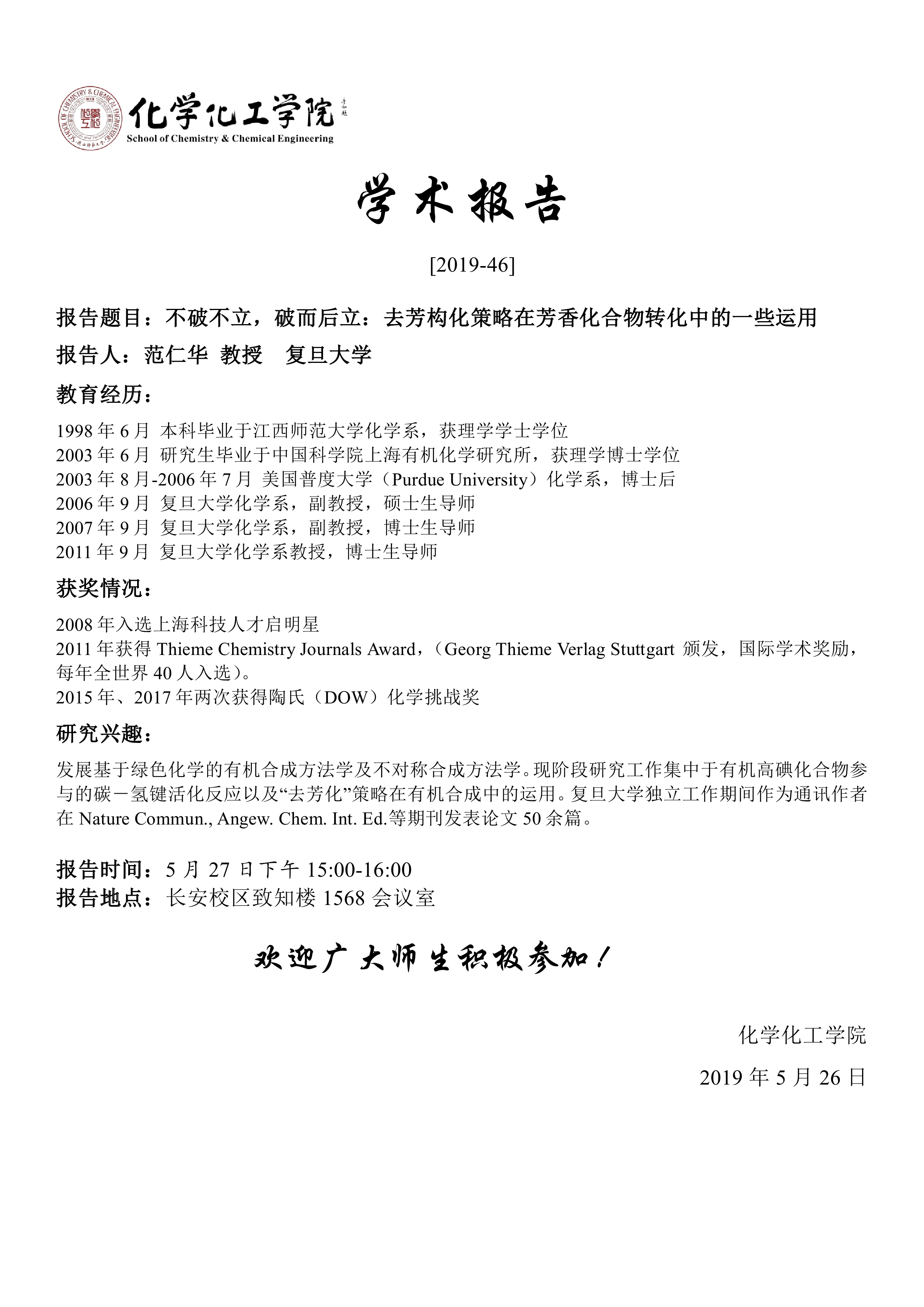 地址:陕西师范大学长安校区致知楼一段