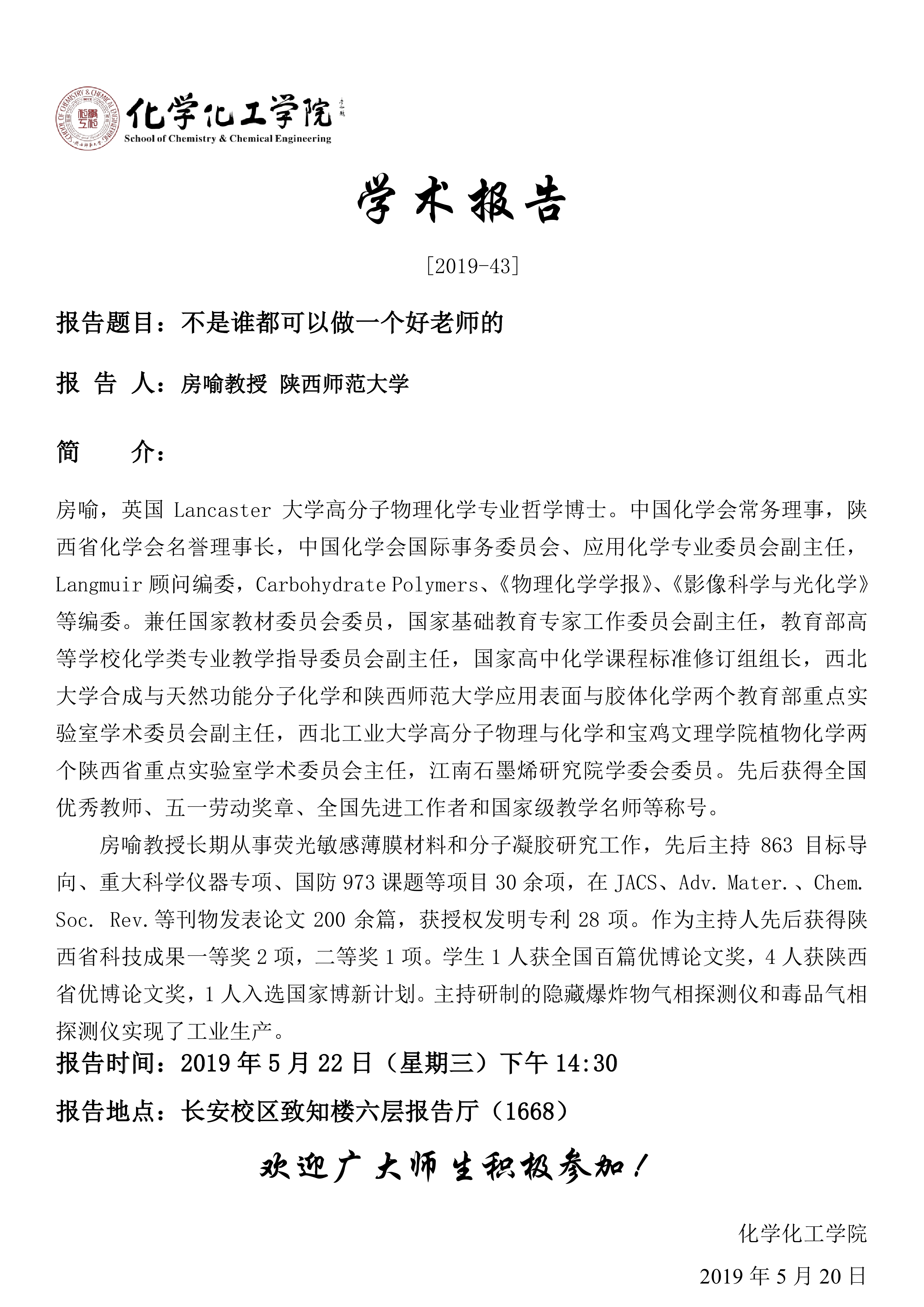地址:陕西师范大学长安校区致知楼一段