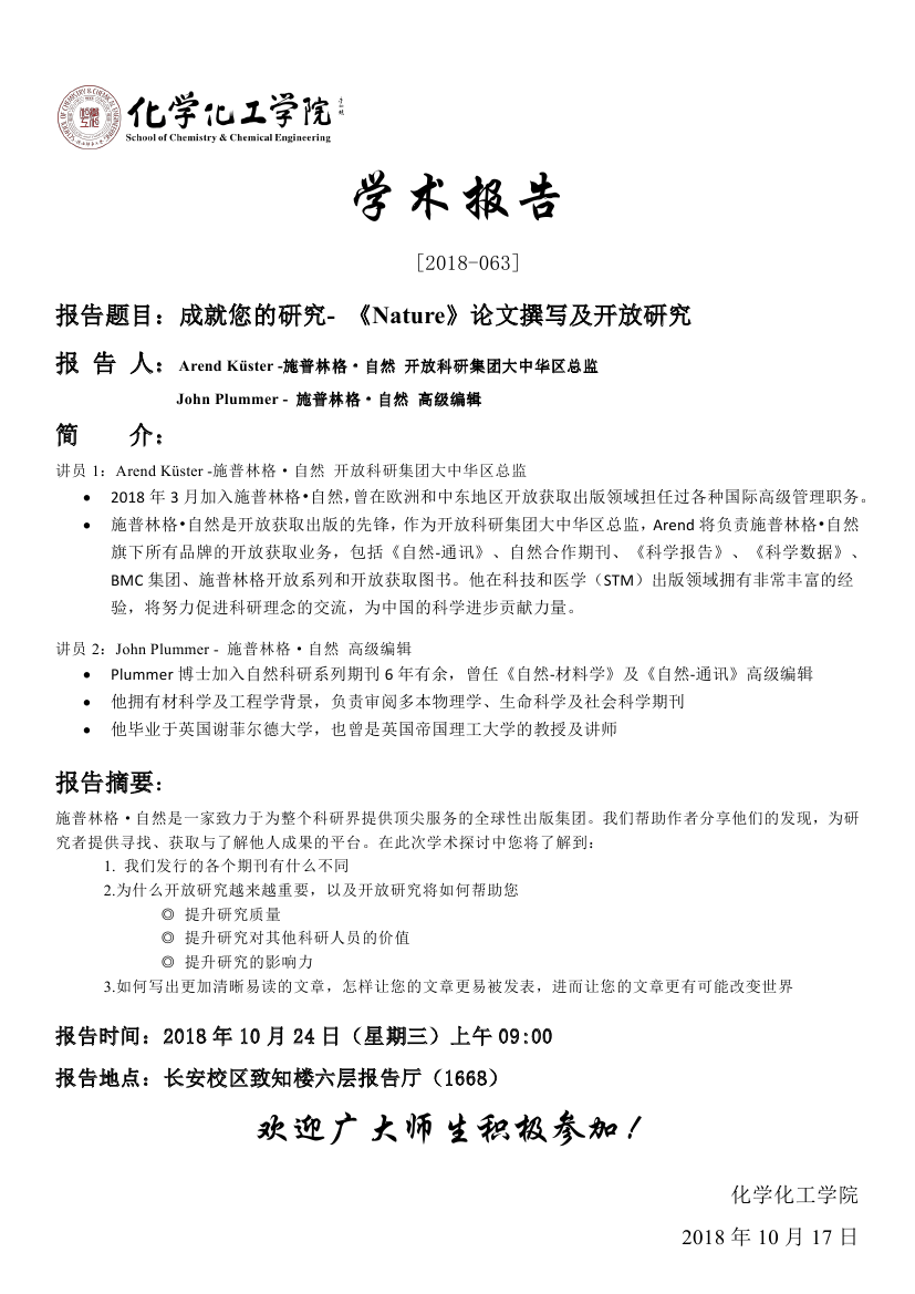 成就您的研究- 《Nature》论文撰写及开放研究