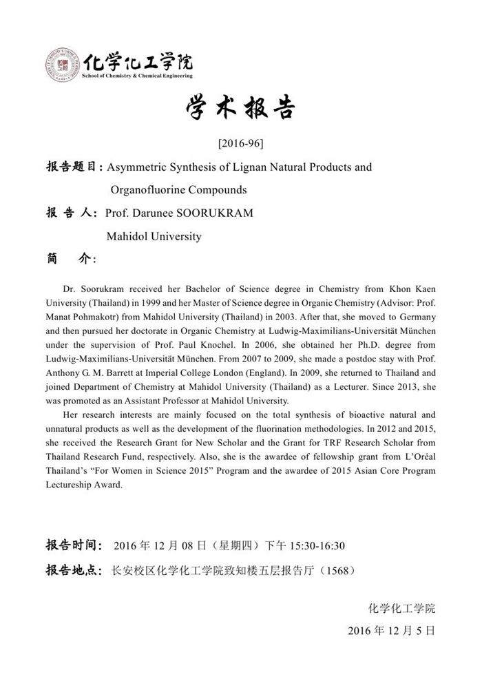 Darunee SOORUKRAM教授学术报告[2016-96]