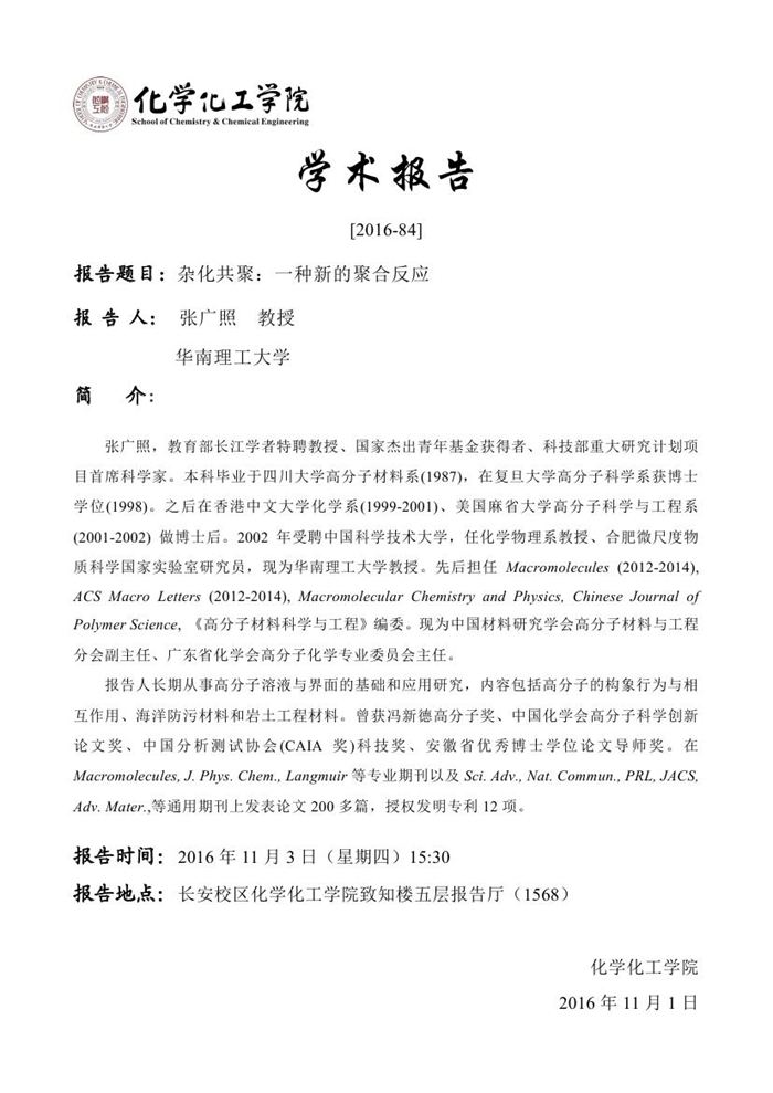 学术报告预告[2016-84]