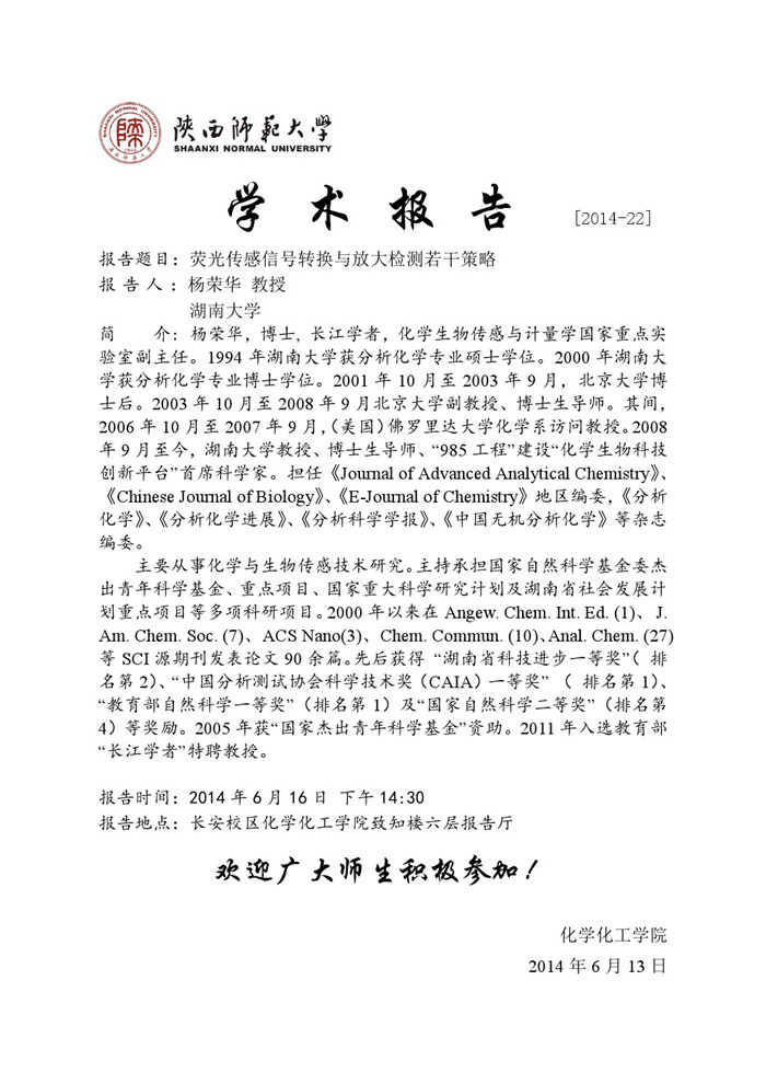 地址:陕西师范大学长安校区致知楼一段