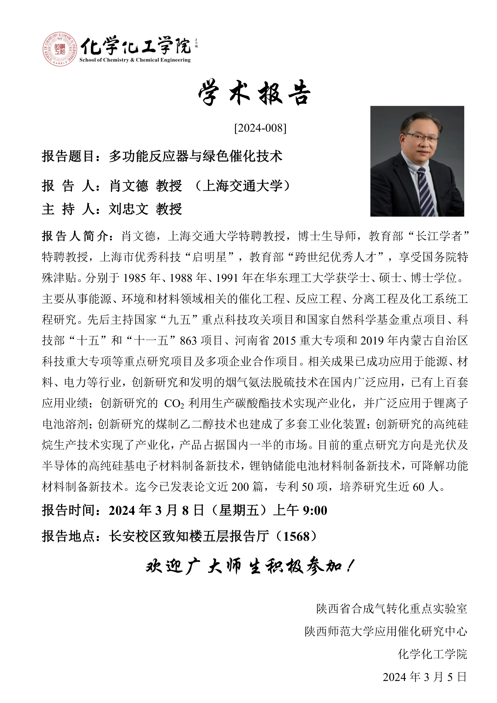 地址:陕西师范大学长安校区致知楼一段