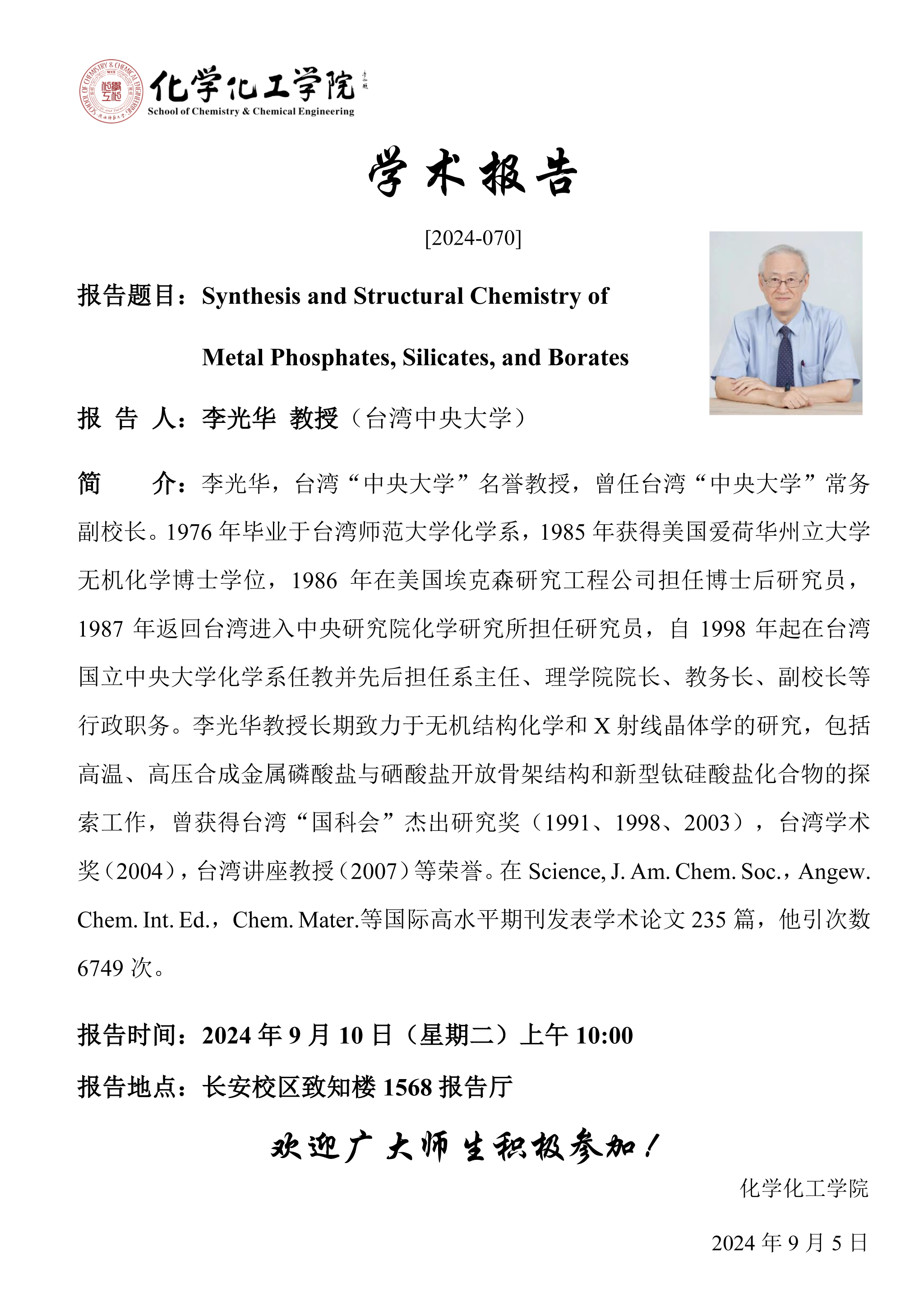 地址:陕西师范大学长安校区致知楼一段