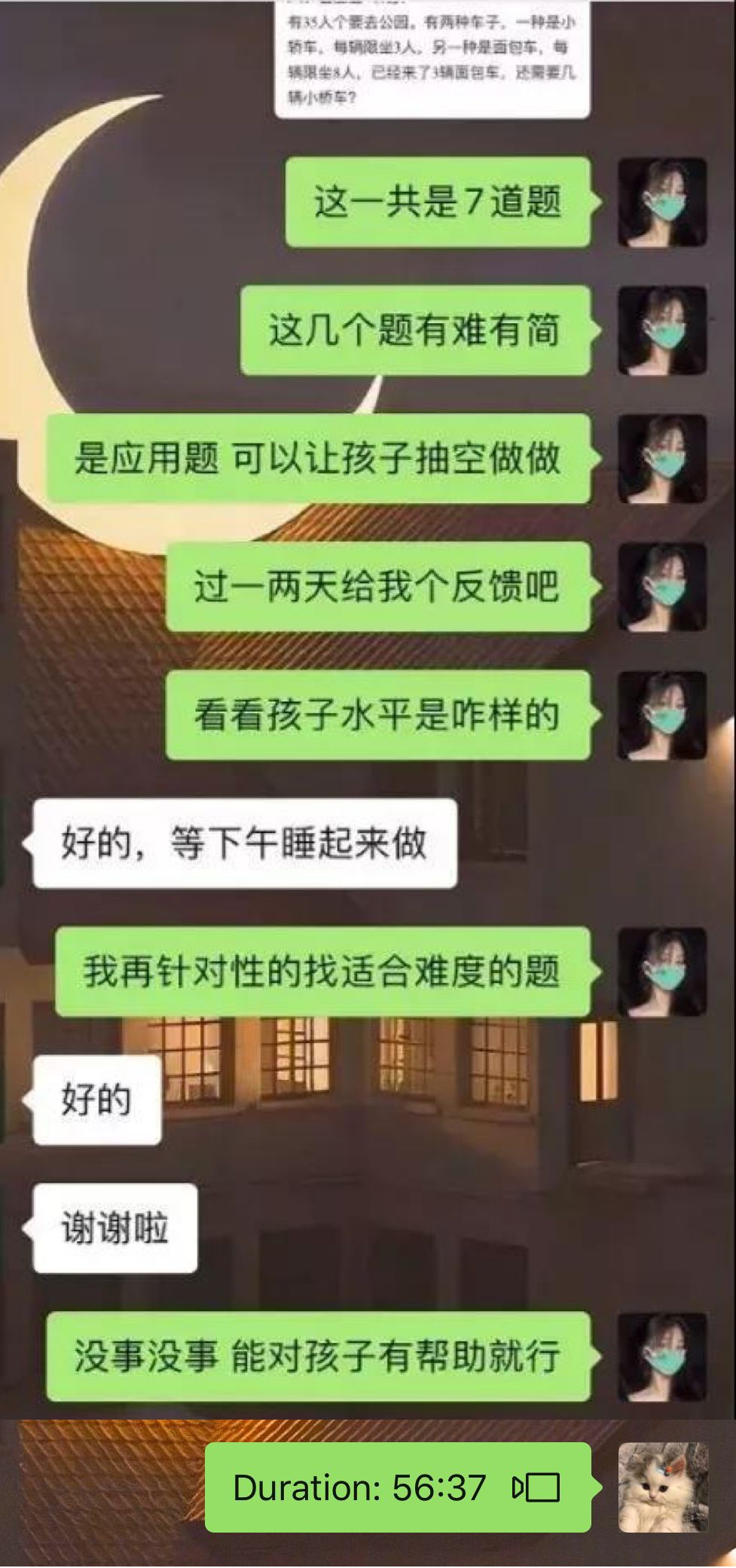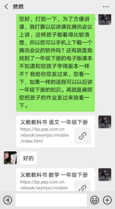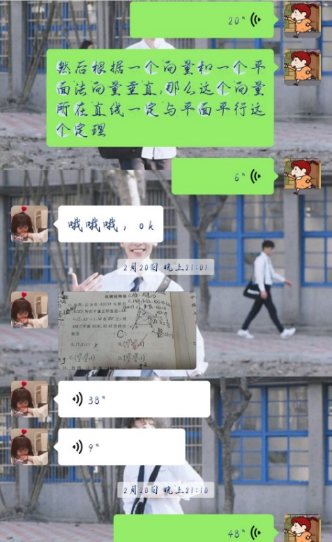从上学期开始,原潇就加入了学校组织的知识援助活动,为农民工子女送去家教援助。近期,因疫情原因无法到家里援助,便展开了网上支教活动,对农民工子女进行一对一在线作业答疑、课程辅导等精细化服务。