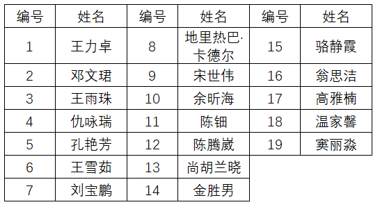 根据我院的代表名额及《共青团陕西师范大学第十四次代表大会代表选举办法》,采用无记名投票的方式和差额选举的方式,最终确定陈钿等19位同志为我院出席共青团陕西师范大学第十四次代表大会的代表。具体名单如下(以姓氏笔画为序):
