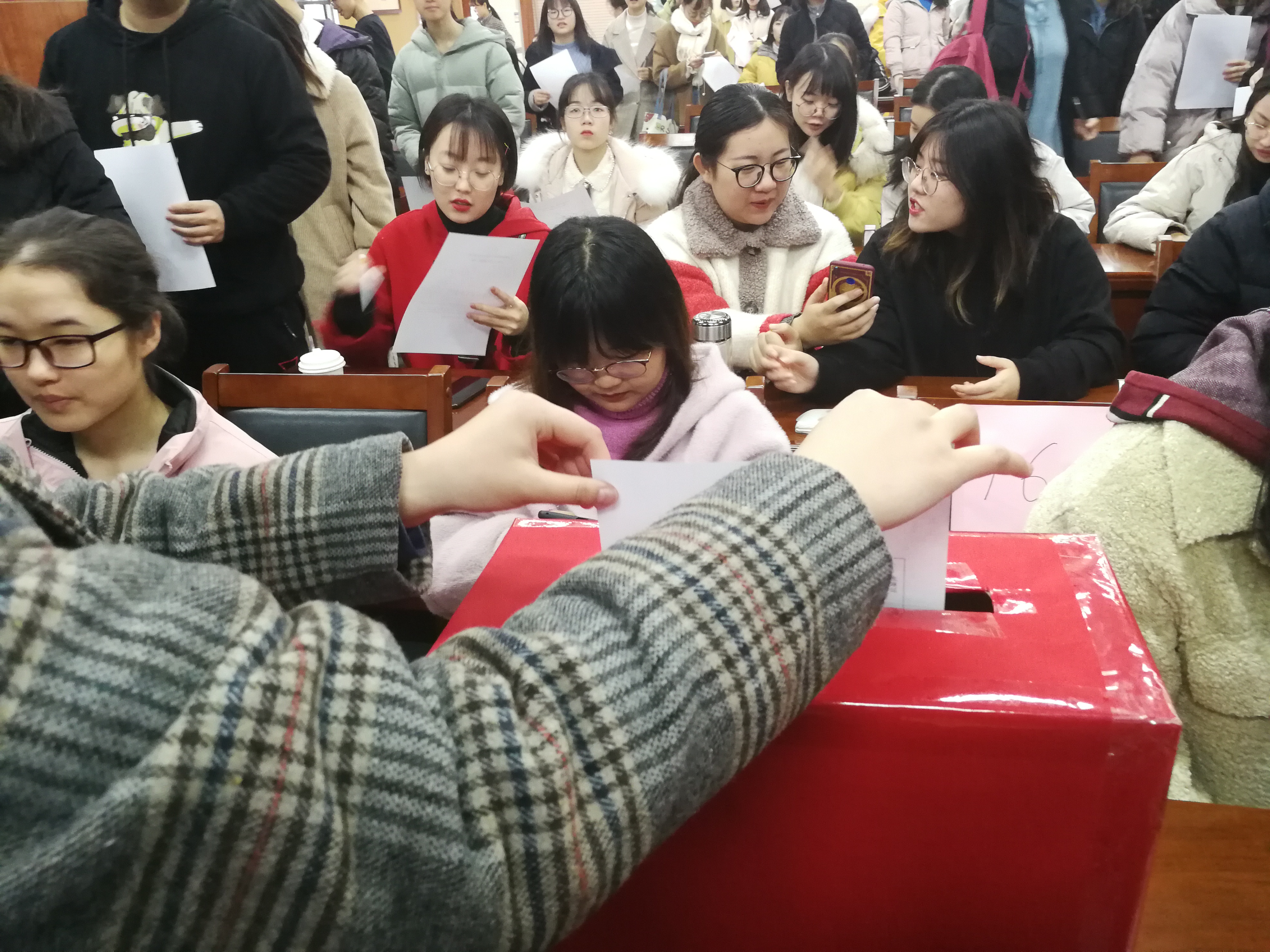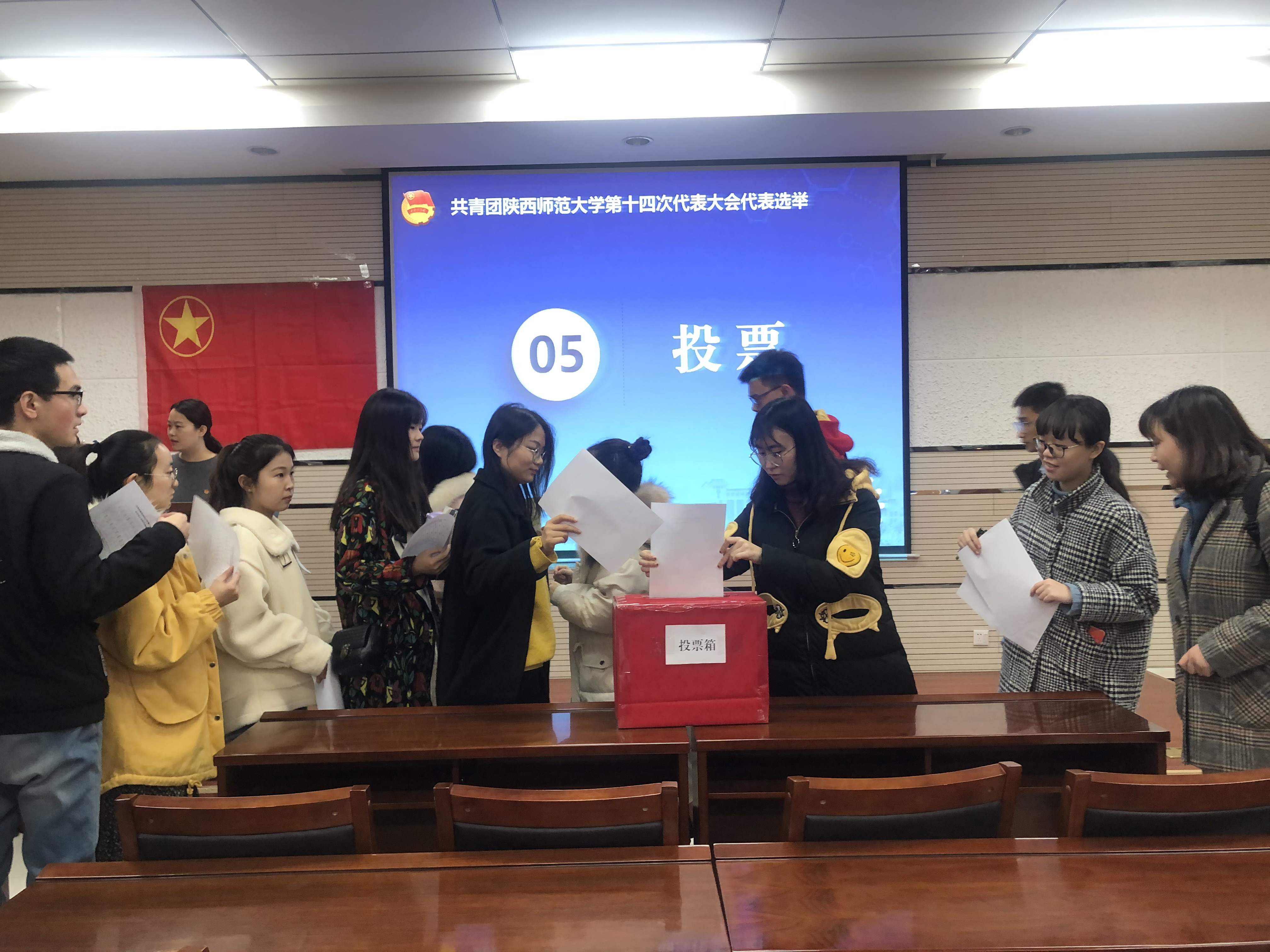 会议严格按照《共青团陕西师范大学第十四次代表大会代表选举办法》的规定,以无记名投票、差额选举的方式进行了选举。与会团员代表们认真填写选票,有序地将神圣的选票投入投票箱中,庄严地行使各自的选举权。投票结束后,监票人、计票人现场清点选票,加以核对,做出记录。