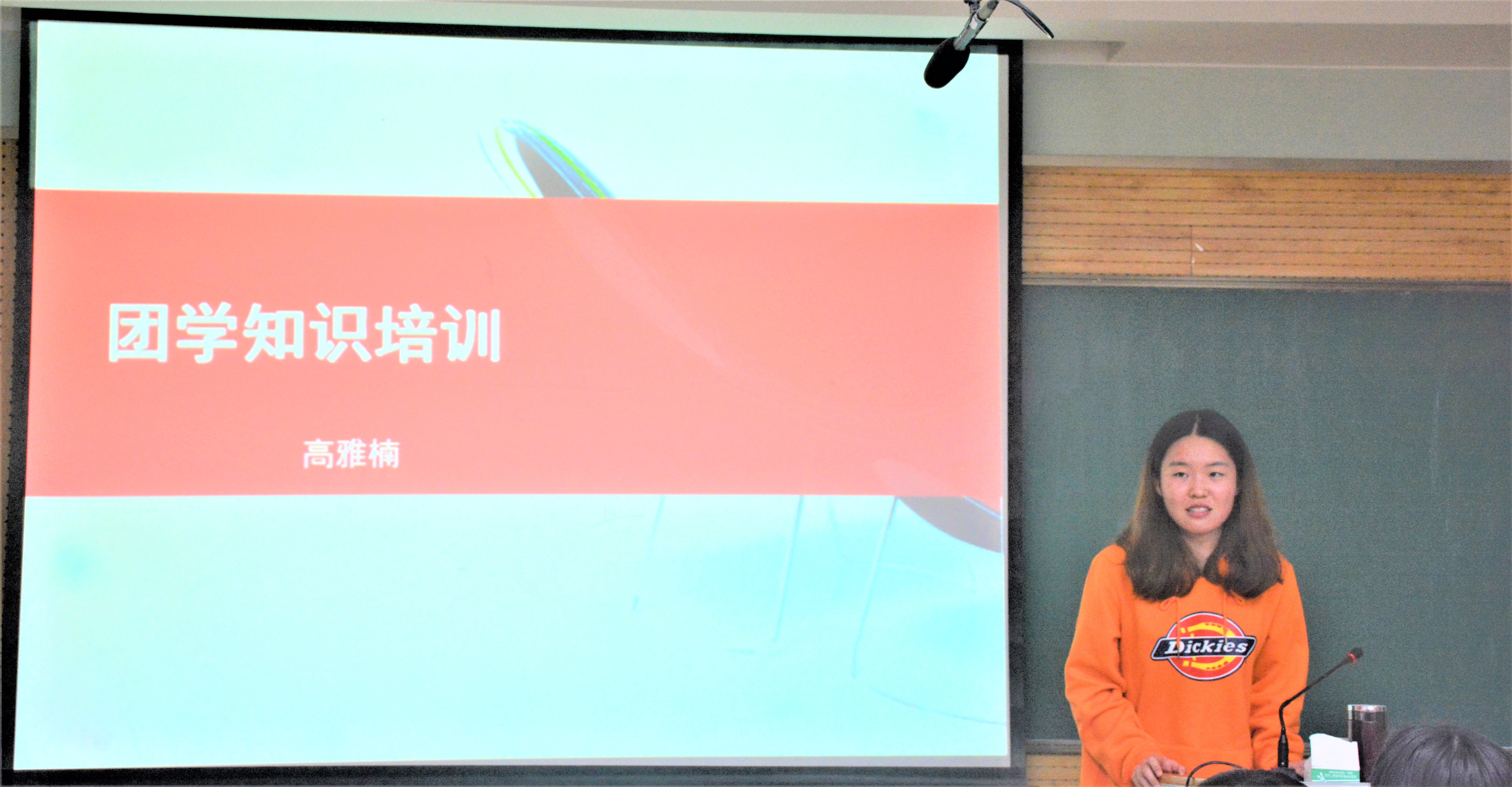 接着,高雅楠就团员的发展与管理进行培训。她分别从团员发展的条件与标准、程序、手续四个方面进行说明,指出发展新团员必须以政治思想为首,先确定入团积极分子,再加强培育、考察,最后接受申请,发展团员。并提及入团后团员享有的权利和要履行的义务。