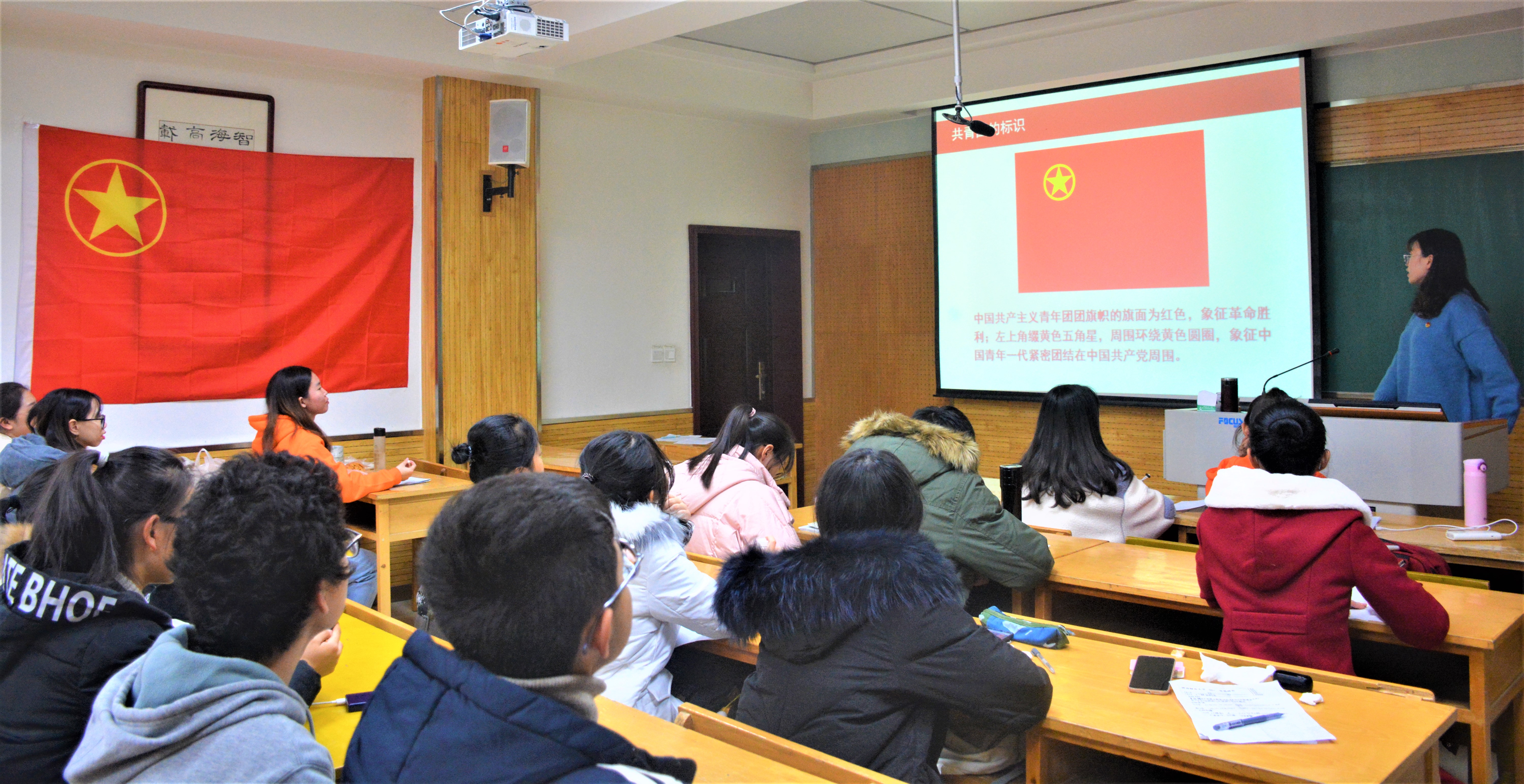 继而,培训从团章概述展开。高雅楠谈到《团章》规定了团的基本制度,是团的总章程,也是全体共青团员行为修养的基本标准和规范,所有共青团员应当时时以团章为标尺,严格要求自我。同时,高雅楠对共青团标识、团旗团徽团歌制作与使用、中国共产主义青年团团歌展开详细介绍。