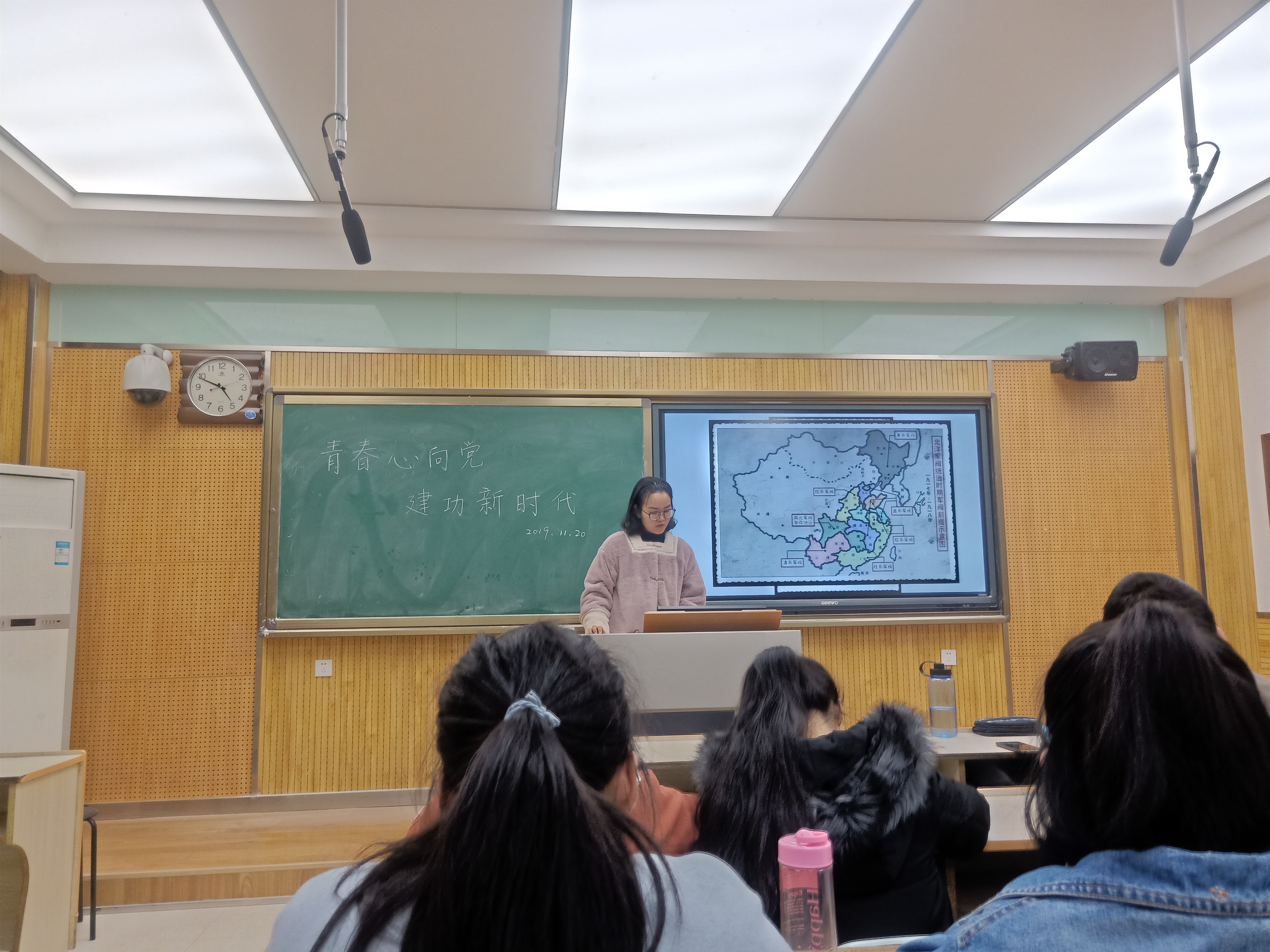 2019年11月20日,化学化工学院化卓1801团支部于教学八楼举办“青春心向党,建功新时代”主题团日活动,围绕学习贯彻习近平新时代中国特色社会主义思想展开,旨在探讨当代师范生如何结合自身优势发展中国特色社会主义,在班级范围内展开大讨论。本次活动由团支书王新月主持。