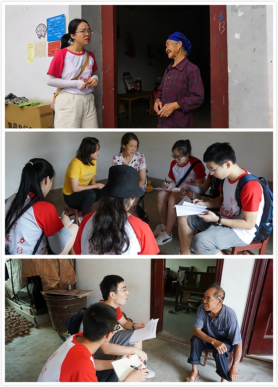 在当地扶贫干部引领下,实践团队来到袁家庄镇,深入走访数十户贫困家庭,了解其生活情况和教育情况,以宣讲扶贫政策、深化扶志扶智、增强脱贫自信为切入点与村民进行了热烈的交流。