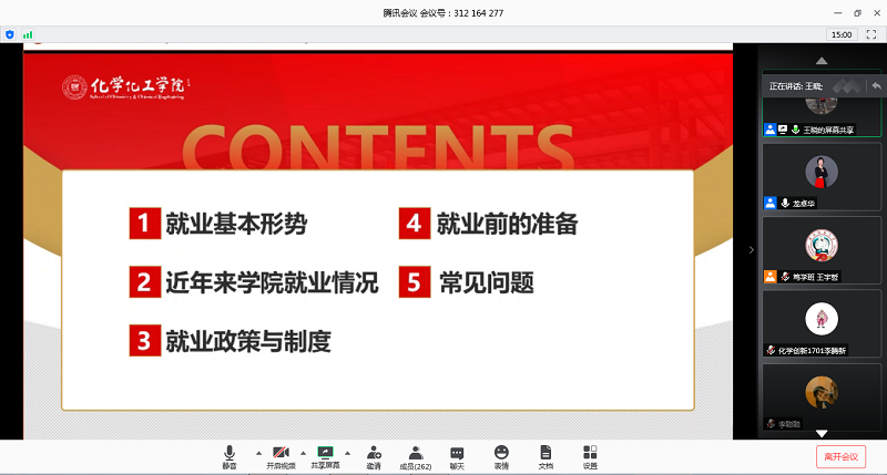 为了帮助学生提前规划就业方向,引导他们在思想上、行动上早做准备,我院将2021届就业指导工作前置,于5月27日晚组织开展了就业工作视频会。本次会议利用腾讯会议网络平台,学院党委副书记王晓老师主讲,2017级本科生辅导员龙卓华老师和2017级全体本科生参加。