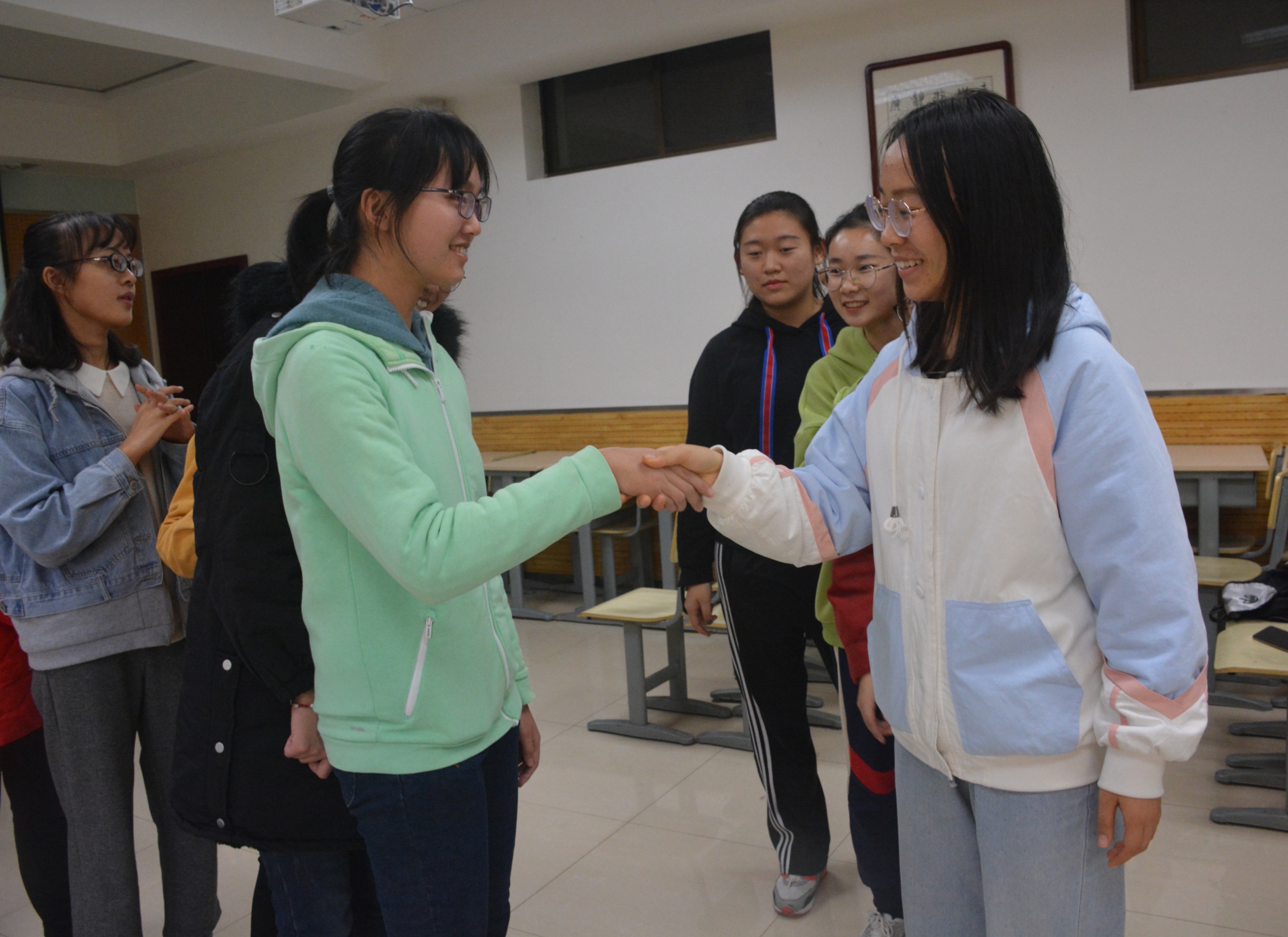11月17日,化学类1901班于教学八楼举办了团体心理辅导活动。活动以温馨的班级视频相册拉开帷幕,设置“大风吹”“萝卜蹲”等游戏环节。同学们积极融入到游戏中,主动介绍自己、分享感受、展示才艺。其中三人抖肩舞将全场气氛推至高潮,同学们为其欢呼鼓掌。此次团辅活动充满趣味性,具有实效性,让同学们感受到彼此情谊和班级温暖。