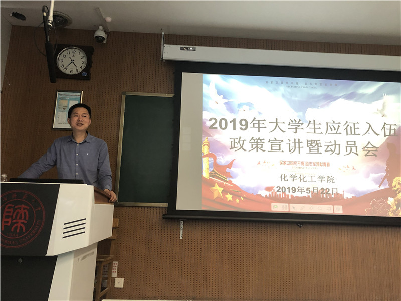 为全面做好学院2019年征兵入伍宣传工作,帮助学生了解相关征兵政策,动员适龄热血青年积极投身军营、报效祖国,5月22日下午16:30,大学生应征入伍政策宣讲会在雁塔校区教学四楼举办,宣讲会邀请到我校武装部国防教育科科长秦维亭,2017级辅导员龙卓华、2018级辅导员翁思洁和100多名学生代表参加。