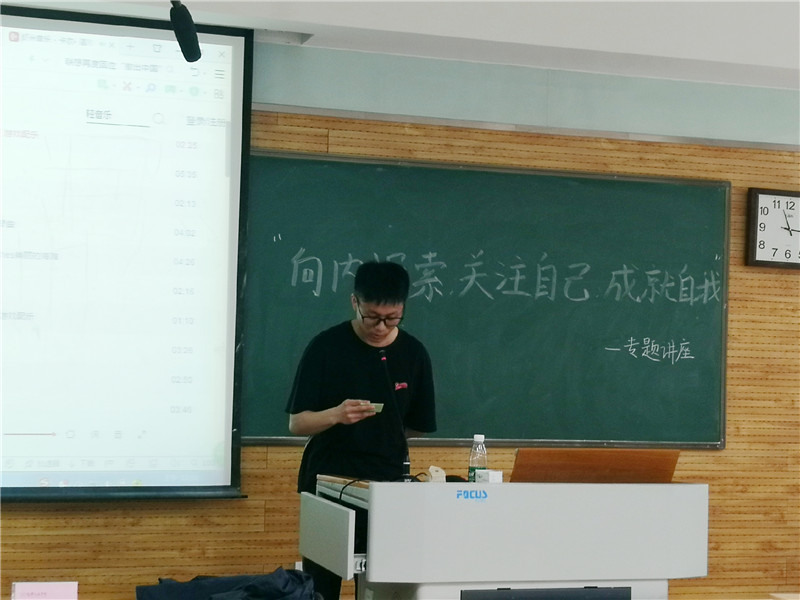 2019年5月30日上午,我院在教学五楼5208教室举行了心理健康专题讲座,本次讲座主题为“向内探索,关注自己,成就自我”,邀请到我校心理健康教育咨询指导中心周全丽老师,雁塔校区各班级学生代表参加。