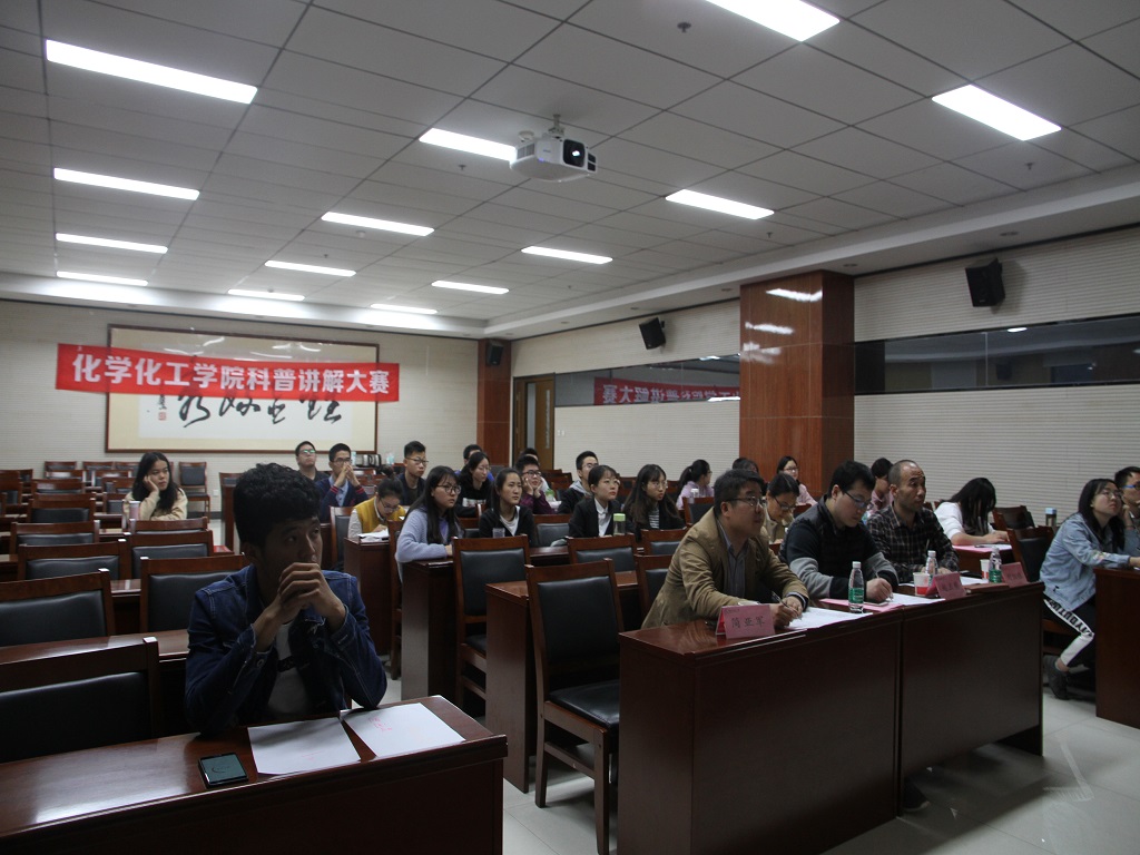 为推动科普教育发展,普及科学知识,弘扬科学精神,激发学生积极投身科学学习实践,陕西师范大学化学化工学院学生会于2019年4月3日晚7点在长安校区致知楼1668会议室举办了“科普讲解大赛”。此次大赛非常荣幸邀请到刘凯强、赵玉明和简亚军三位老师担任评委。
