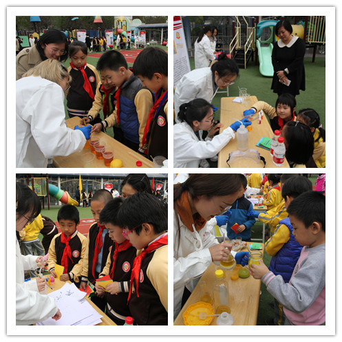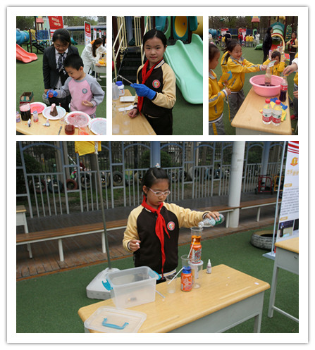 下午14:30,一至五年级的同学们在老师的带领下,按照年级从低到高的顺序依次进入展区进行参观。大操场的展区共分为三块,分别是:科幻画展区、智能组合大比拼和科学奥秘体验区,而科学奥秘体验区正是由来自我院的十七个团队的趣味化学实验展所组成。考虑到小朋友们的理解能力,此次选取的展示实验均是由贴近生活的实验原理和明显且常见的实验现象构成,操作便捷,装置简单,旨在帮助同学们感受实验的过程。