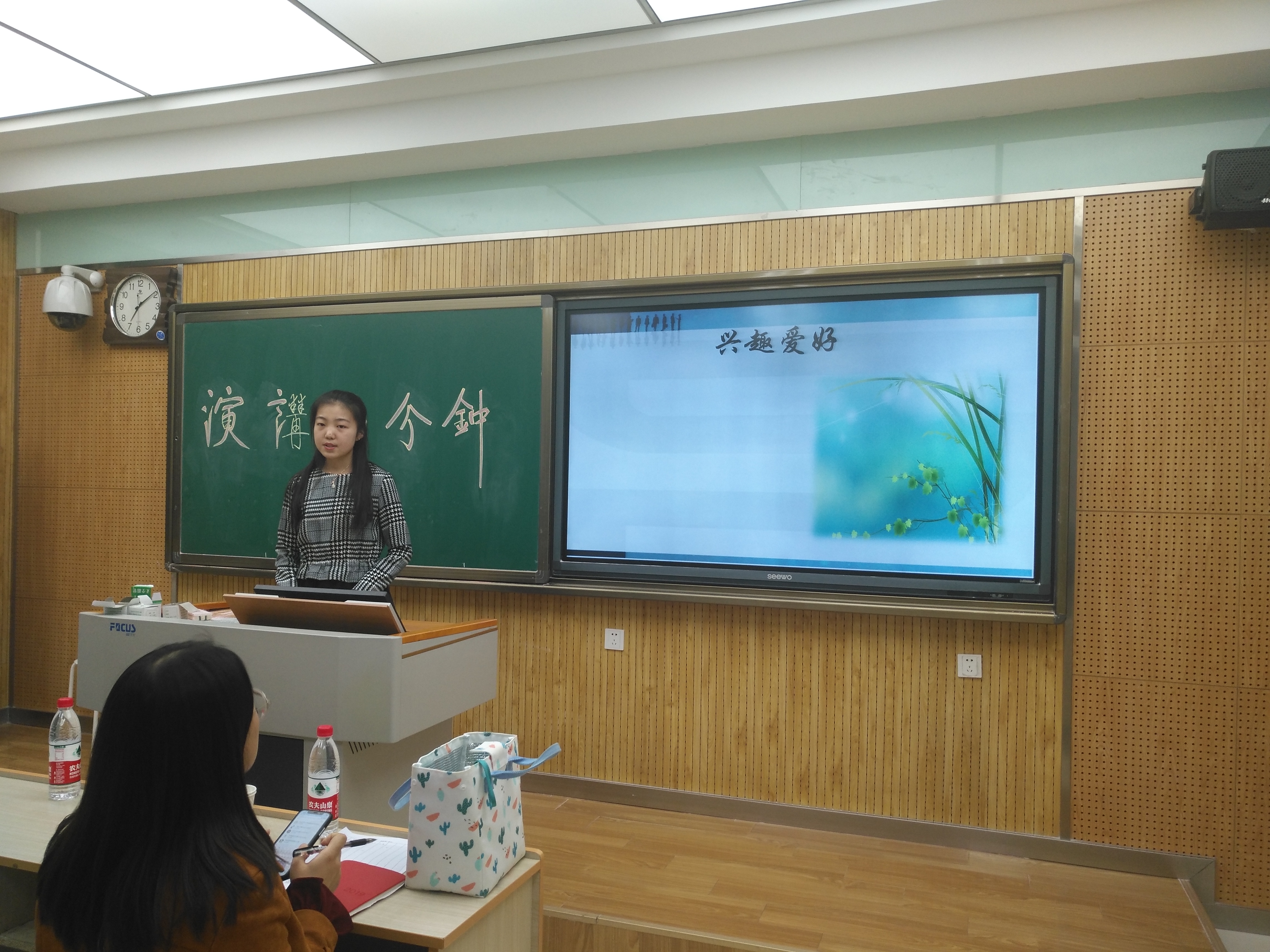 此次演讲旨在鼓励同学们勇敢走上讲台、克服怯场心理、提高自己的语言表达能力。演讲以兴趣爱好、我的家乡为主题,同学们激情满满,积极参与,在演讲前进行了充分的准备。每一位同学都走上讲台为我们讲述他的兴趣爱好或者介绍来自家乡的风土人情。有的幽默搞怪展现自己活泼的一面,有的在严肃中向大家展示自己的思考,有的略显娇羞伴着些许的紧张。