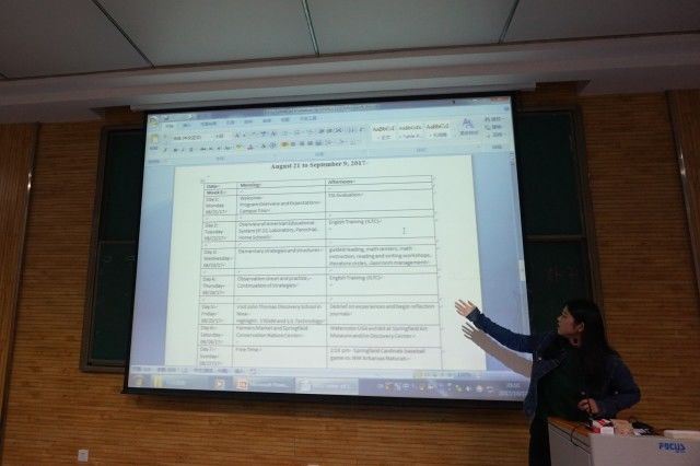 为提高我院学生对语言学习的兴趣,号召和鼓励同学们多了解和参与各种交流项目,我院于2017年10月17日在教学五楼5101举办了美国游学项目经验交流会。交流会请来了我院2015级今年暑假赴美游学的李静涵、吴悦和石昊彬同学,2017级辅导员龙卓华老师也出席了此次活动。