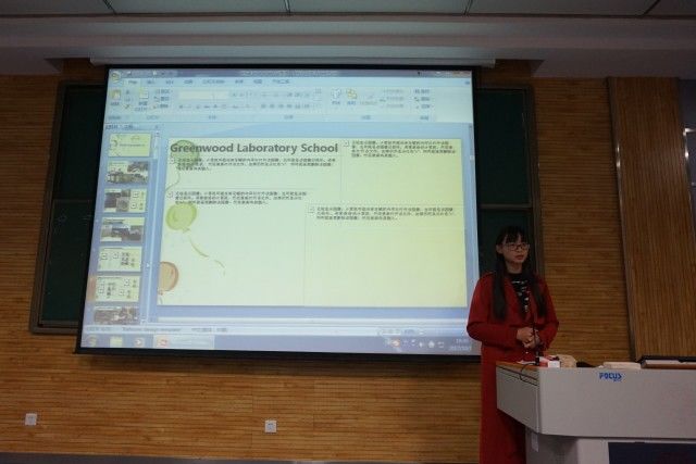 李静涵同学首先介绍了自己在美国的经历与生活,详细地介绍了美国中小学的教育方式并与我国的进行对比。