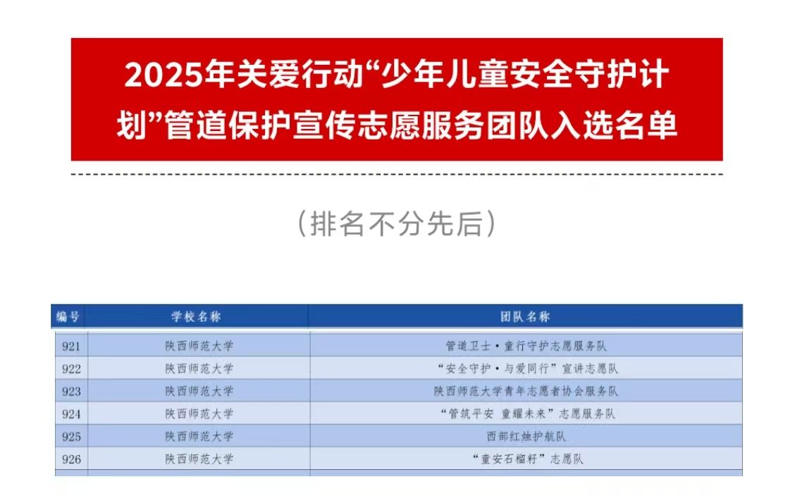 近日,团中央青年志愿者行动指导中心公布了2025年关爱行动“少年儿童安全守护计划”管道保护宣传志愿服务团队名单,我院本科生第三党支部组建的管道卫士·童行守护志愿服务队成功入选。