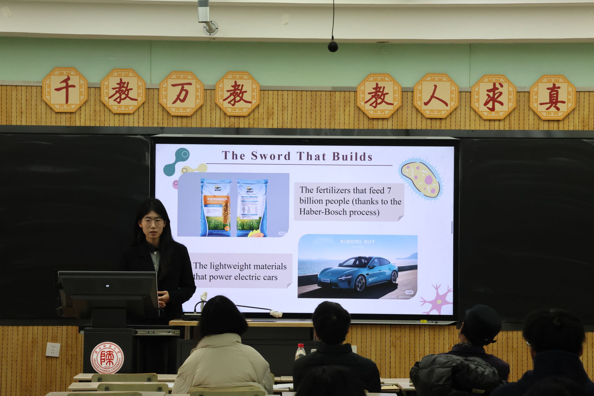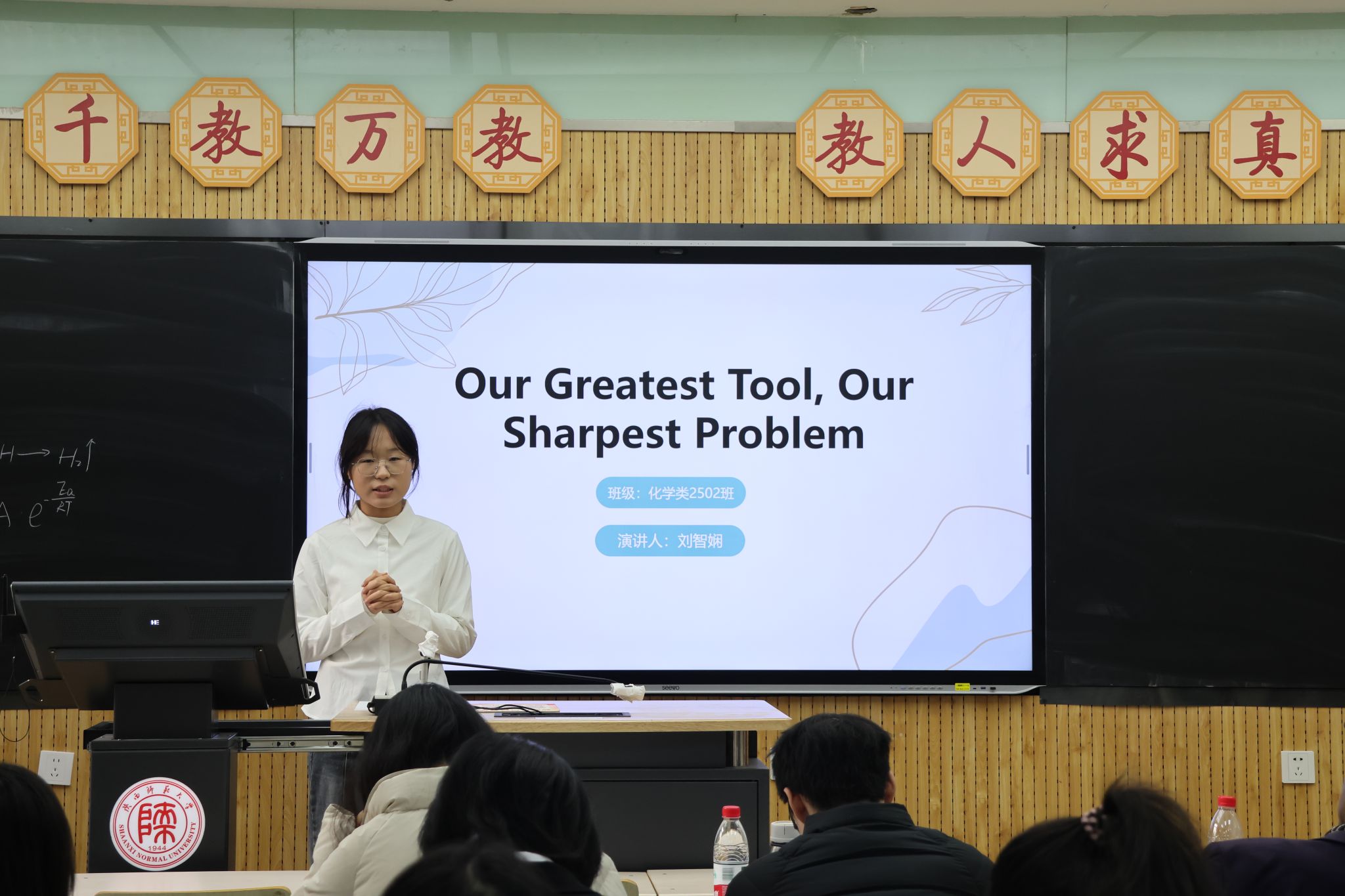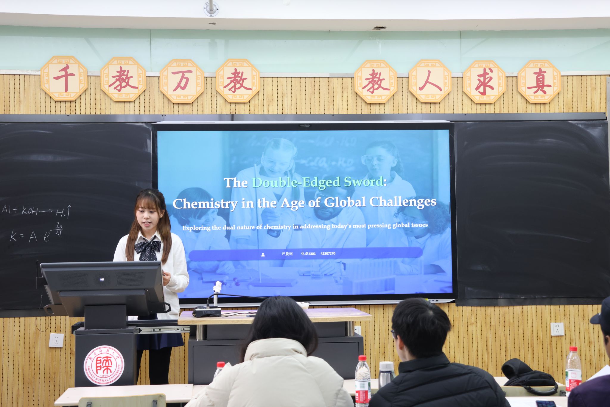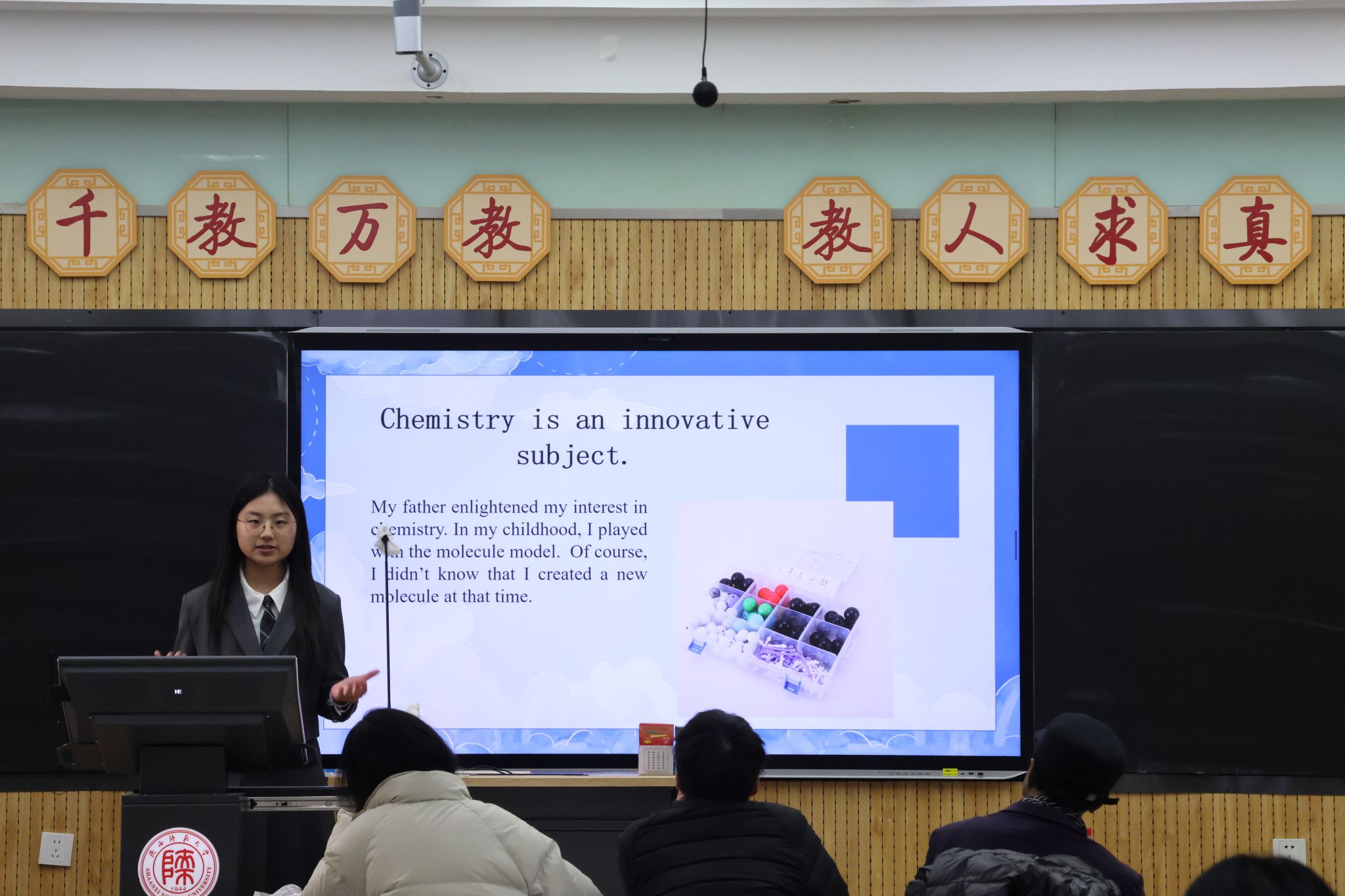 在定题演讲环节,选手围绕四大主题展开演讲——从“化学即尝试”的探索精神,到“新物质建筑师”的创新使命;从聚焦可持续发展的“绿色分子”理念,到“化学双刃剑”中的辩证思考。他们用语言传递思想,用演讲连接世界,展现出我院学子扎实的语言基础、良好的学科素养与严谨的逻辑思维。