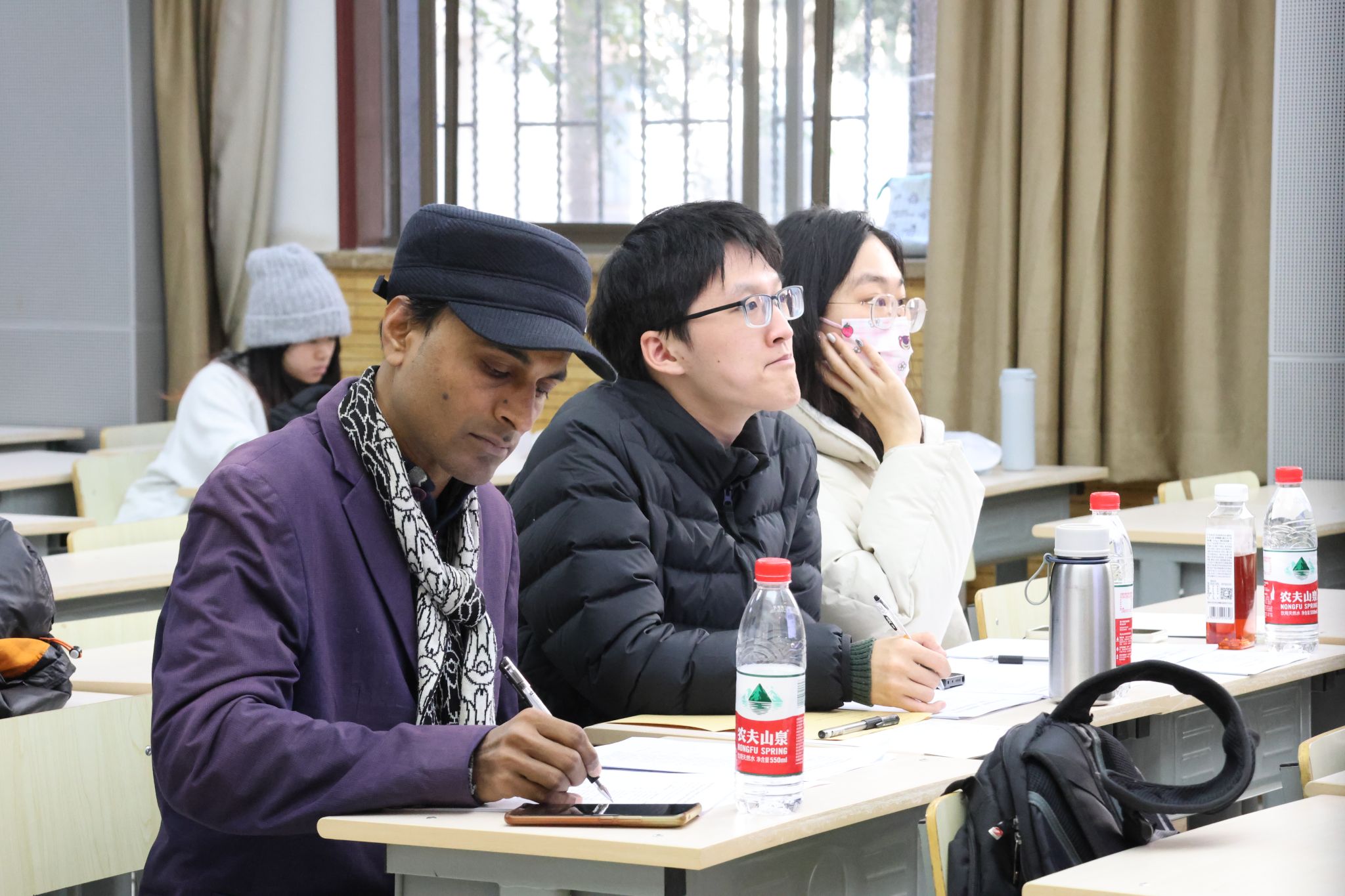 比赛于2025年11月30日在雁塔校区教学八楼8106教室举行,我院教师Somnath Mukherjee、外国语学院学生王雨萱、林弋澄担任本次比赛评委。