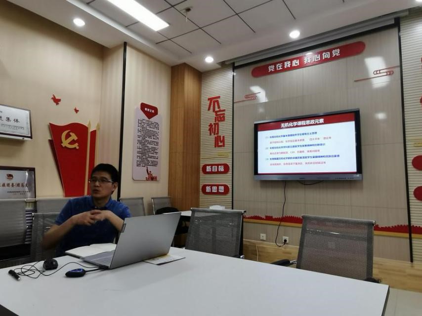 6月17日下午,教工无机化学党支部在致知楼1347会议室召开支部会议,支部书记翟全国带领党员教师认真学习了“高等学校课程思政建设指导纲要”等系列文件,结合复旦大学王全瑞教授关于课程思政的授课文件,对指导纲要进行了具体剖析,最后结合无机化学教学实践,系统分析总结了无机化学教学中的课程思政元素。高玲香、焦桓、胡满成、刘志宏、张伟强、魏灵灵、李淑妮等党员老师分别作了有关课程思政建设的发言。会议同时提出成立无机化学、无机化学实验、无机及分析化学课程教学小组的初步构想,同时就“老带新”、辅导课等问题进行了热烈讨论。