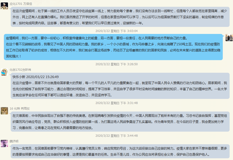 3月20日,我院本科生第二党支部召开以“读回信、谈感悟”为主题的线上活动。
