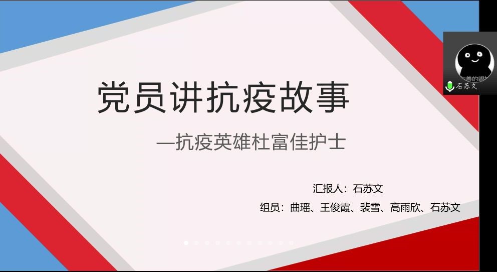 为号召青年党员以抗疫英雄模范为榜样,把爱国情、强国志、报国行自觉融入到学习生活中去,我院本科生第二党支部于4月29日晚上7点通过腾讯会议平台召开以 “学抗疫英雄,讲抗疫故事”为主题的线上主题会议。