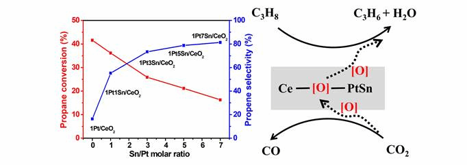 不同Sn/Pt摩尔比对PtSn/CeO2催化CO2氧化丙烷脱氢性能的影响及反应机理图